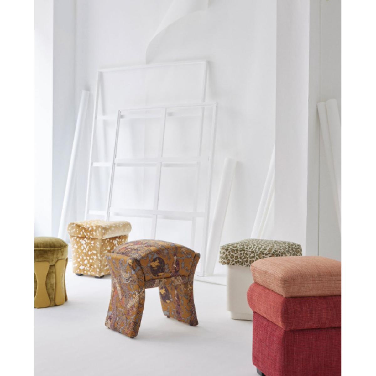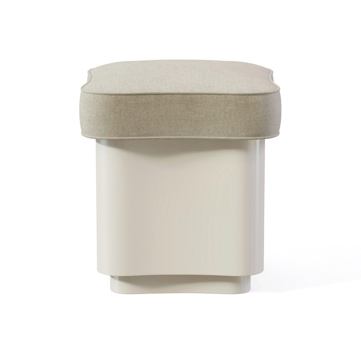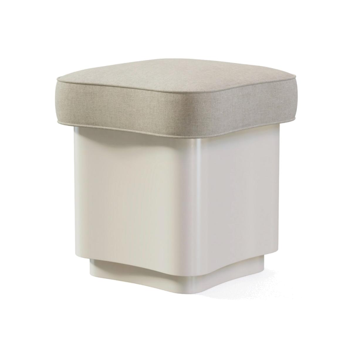 With its upholstered seat and lacquered wood base, this stool plays with fabrics and textures. Please view our fabrics page and contact us for options and pricing. Quantity of fabric required is 0. 6 metres in total.