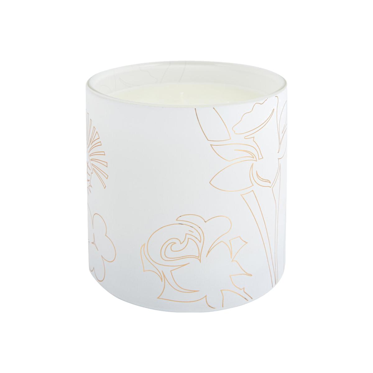 Fill your home with the sweet scent of this Noble Isle candle. Combining notes of rhubarb, juniper berry, rosemary, tarragon, moss and cedarwood, it is a truly elegant scent. Encased in a matte white glass vessel with a rose-gold etching of the Coat of Balms, this candle makes the perfect centrepiece. Key features: * Scented candle * 120 hours burn time * Three wicks for an even burn * Fragrance notes: rhubarb, juniper berry, rosemary, tarragon, moss, cedarwood * Made in the UK