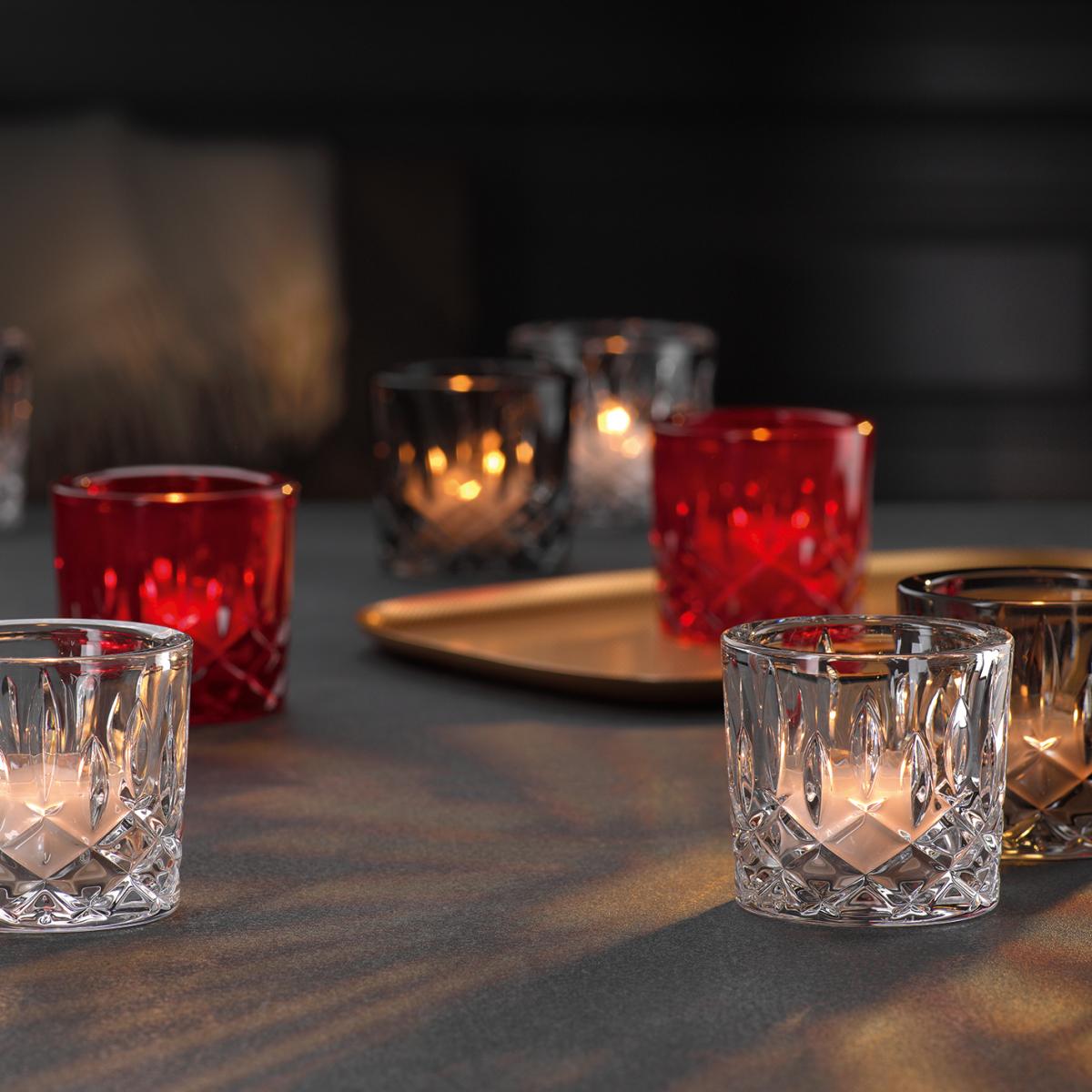 The Noblesse lantern from Nachtmann is a complementary piece to the myriad glassware items in the same series. The lantern features the classic diamond pattern that defines the collection. Naturally it is also fashioned from the finest crystal glass so that it can reflect and refract the light with grace and ease. The perfect fixture at the dining table or writing desk. Available in several colours, you can place each one on its own or combine several different shades together.