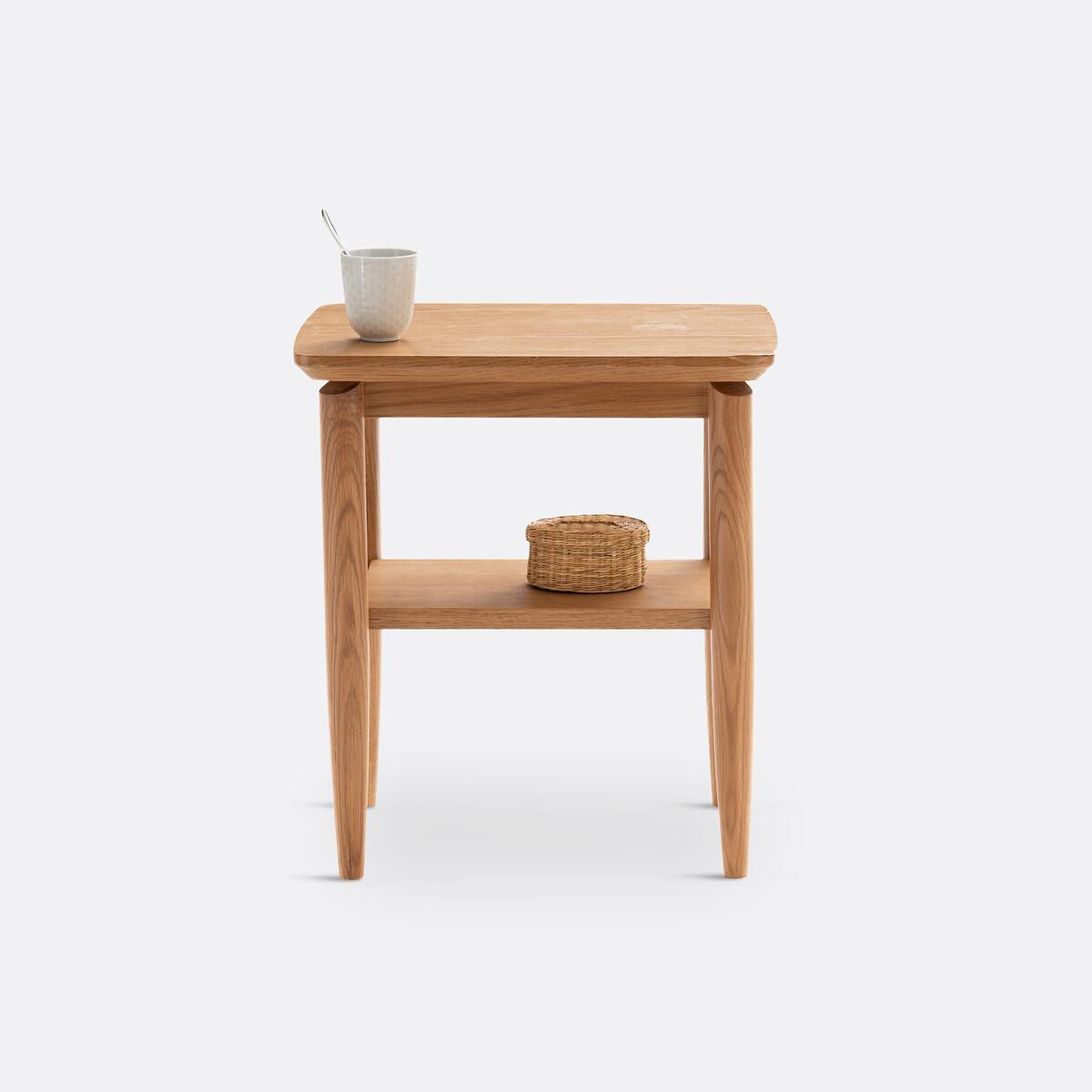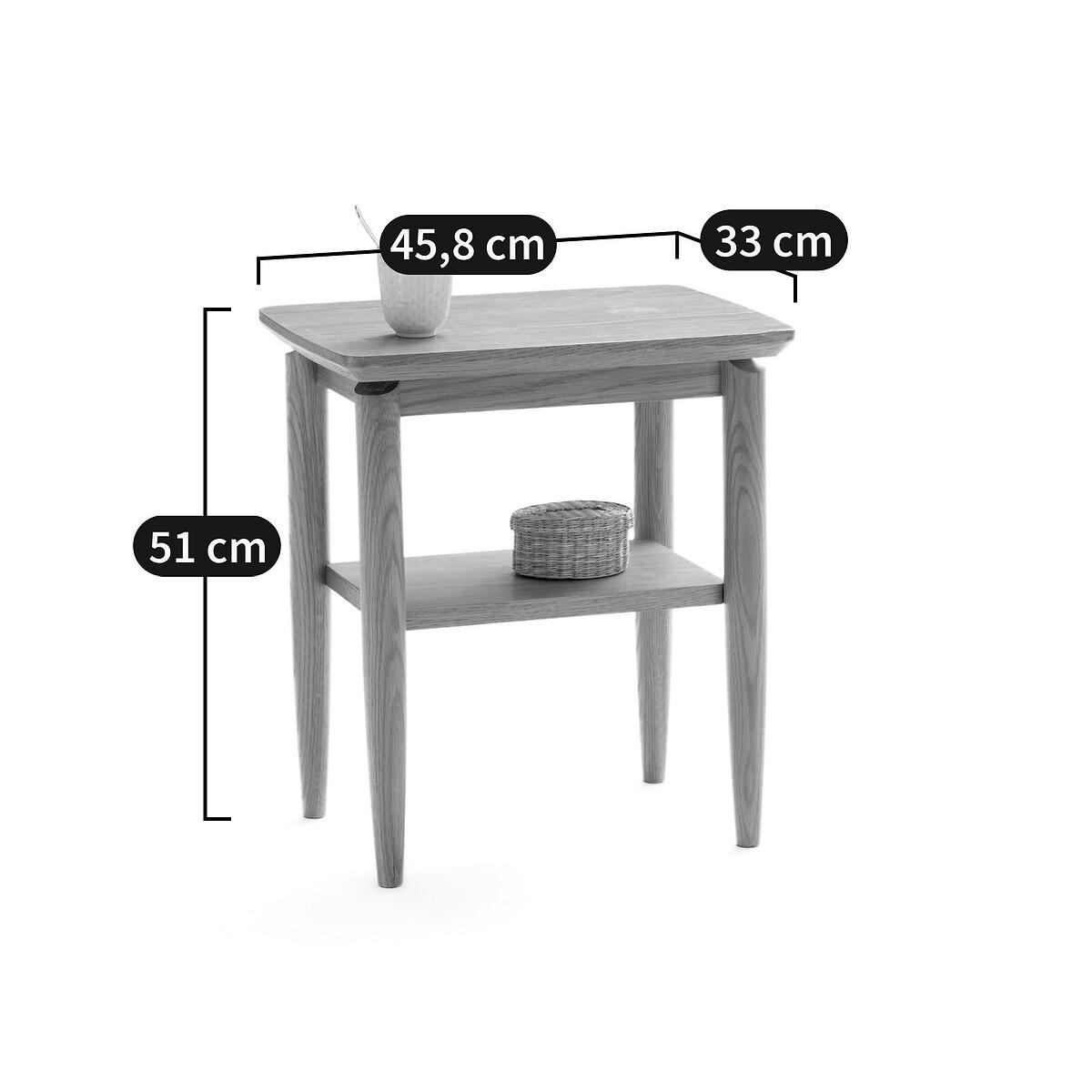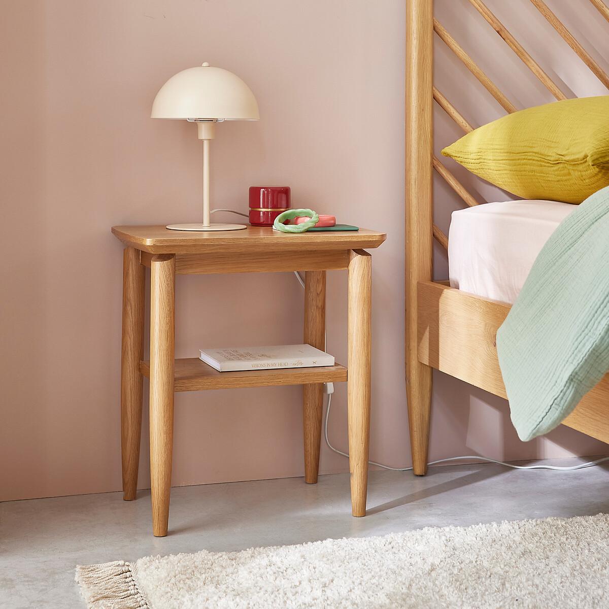 The Nochy two tier bedside table. Its elegant style will look great in any bedroom or living room. It can be used as a bedside or side table. Product Details • 2 MDF oak veneer tiers • Solid oak legs • Nitrocellulose varnish finishDimensions. Overall • Width 45.8cm • Height 51cm • Depth 33cm. Usable dimensions • Shelf : L34.5 x H26 x D21.5cmDelivery:. Assembly required. Available for home delivery. Note! Please check that all access points are large enough to accommodate your delivery (doors, stairs, lifts). • WOOD FROM SUSTAINABLY MANAGED FORESTS. FSC® certified wood comes from forests that are environmentally, socially and economically well managed. Dimensions and weight of parcel1 parcel • L54 x H45 x D12cm. Weight 8kg