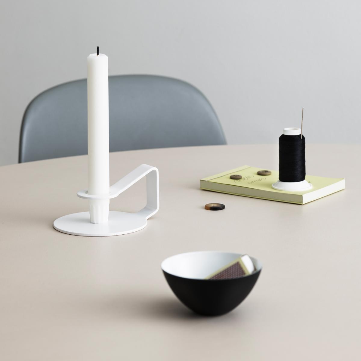 Light up the dark with the minimalistic Nocto candleholder designed by Pontus Ny for Normann Copenhagen. The candleholder is made of painted zinc and has a modern design inspired by the classic chamber candleholder with a handle that makes it easy to move around. Place the candleholder in a window or on a table and combine it with other stylish interior details from Normann Copenhagen to decorate your home with! Choose between different colors.
