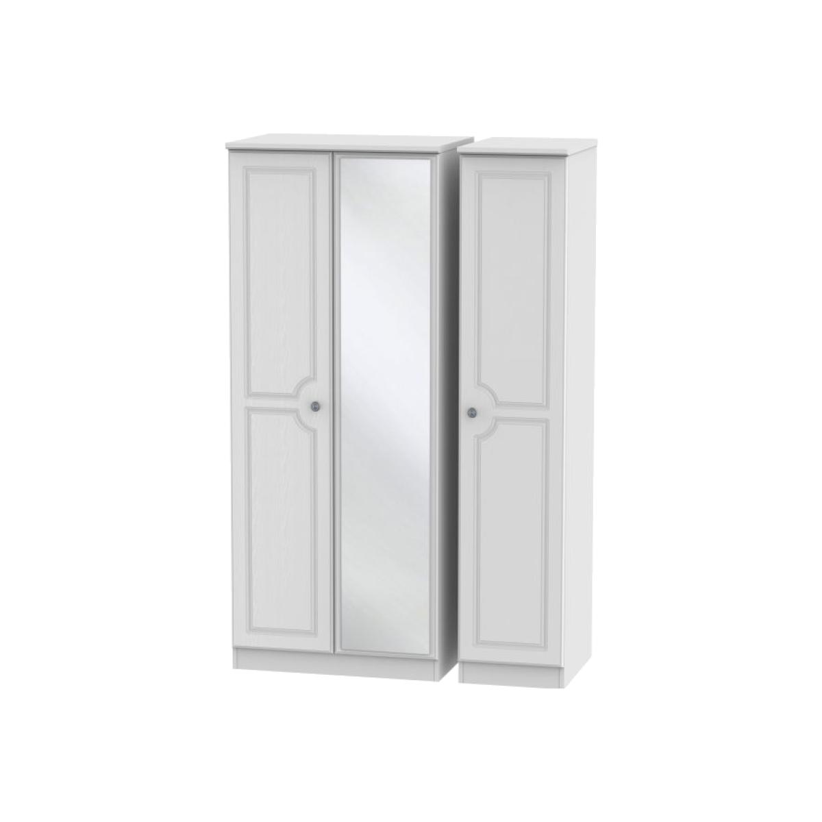 The Stunning Nocton Collection combines a traditional design with the option of a modern high gloss or wooden finish creating a truly versatile collection. Designed with todays lifestyle in mind the Nocton Triple Mirror Robe is an elegant, practical and sophisticated robe. With the abundance of pieces in the Nocton range you will be able to truly customise it however you want to suit your needs. Choose from 6 beautiful finishes (White, Beech, Cream, Light Oak, Driftwood and NEW White Gloss) all complimented with quality brushed steel bar handles. All Pieces will arrive ready assembled. 12 Month Guarantee. Dimensions: 182.5cm x 111cm x 53cm