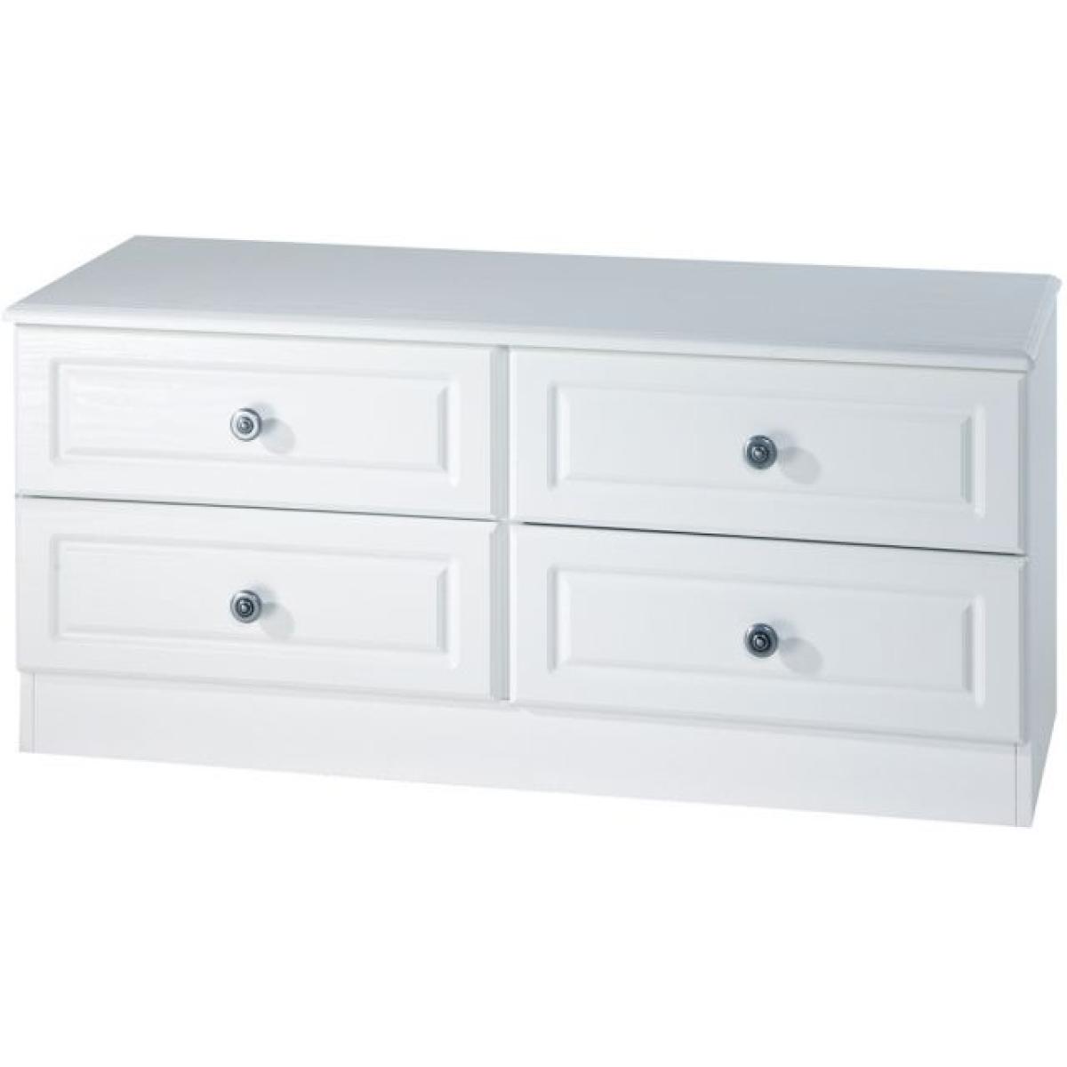 I tend to call it the 4-drawer bed box. I love its clean lines and functional design - the low profile and white finish suit compact or minimalist bedrooms, and it slots neatly into Scandinavian, modern or coastal interiors. The under-bed drawers let you stow away spare bedding, seasonal clothing or shoes without needing extra furniture. For styling, keep your bedding in neutral tones and add a textured throw or a couple of cushions for depth. Pair with a simple, low bedside table and a slim runner rug to maintain the streamlined feel. Inside the drawers, use baskets or dividers to keep smaller items organised.