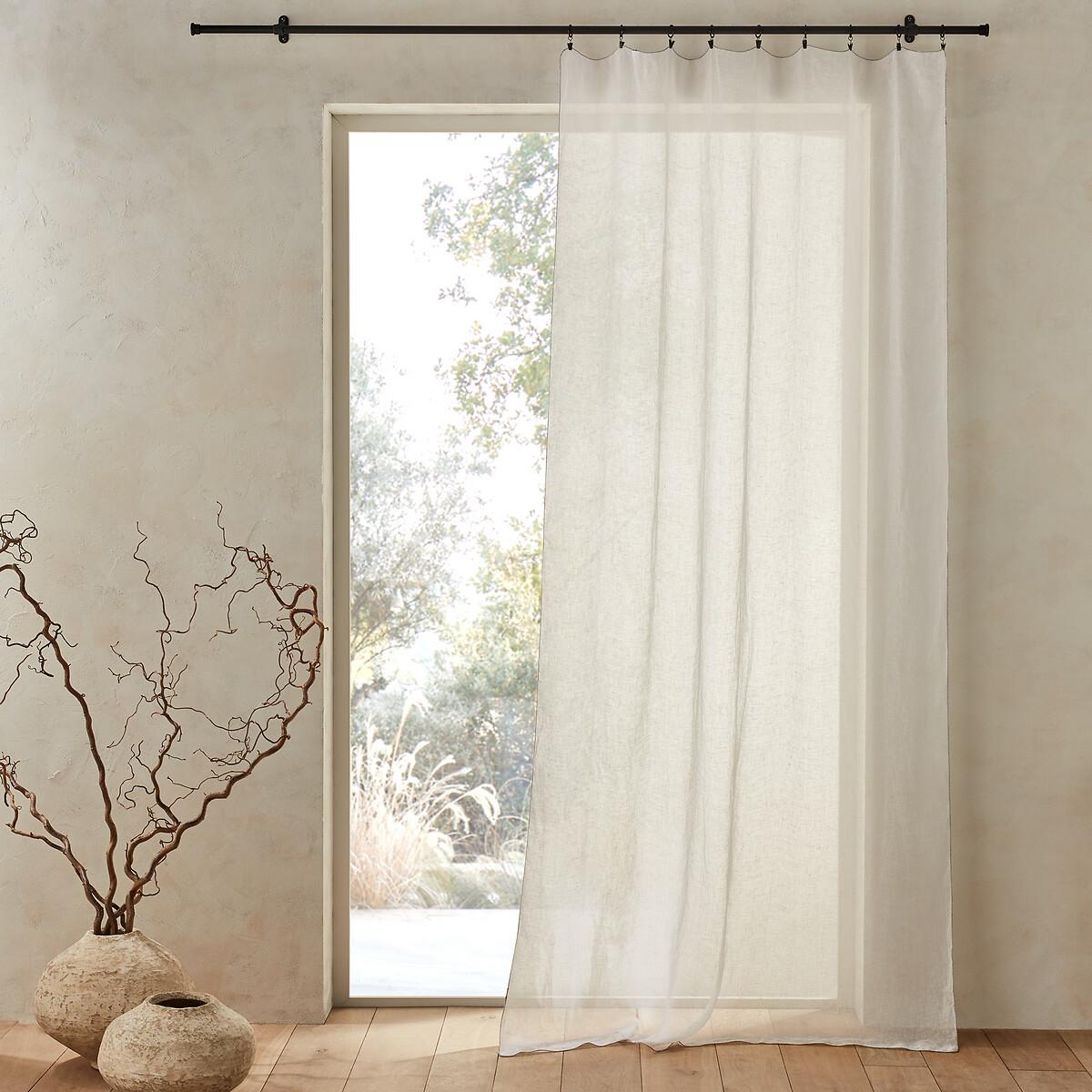 The Noctuelle voile curtain. Made from linen voile, a charming and airy material that elegantly filters the light. Product Details • 100% linen • Linen voile • Contrasting topstitching finish • Rolled hem • Hang using the Loch curtain clips available on this site. Care instructions • Machine washable at 30°CSizes • Width 140 x Drop 180cm • Width 140 x Drop 220cm • Width 140 x Drop 260cm • Width 140 x Drop 350cm • OEKO-TEX® Standard 100. Standard 100 certification by OEKO-TEX® tests textile products for harmful substances via an independent, international label.