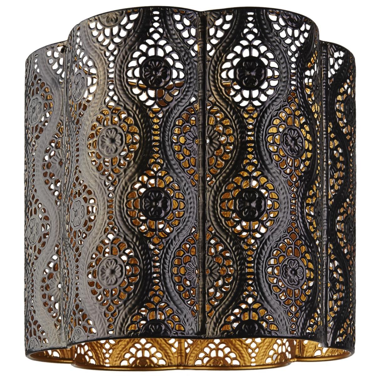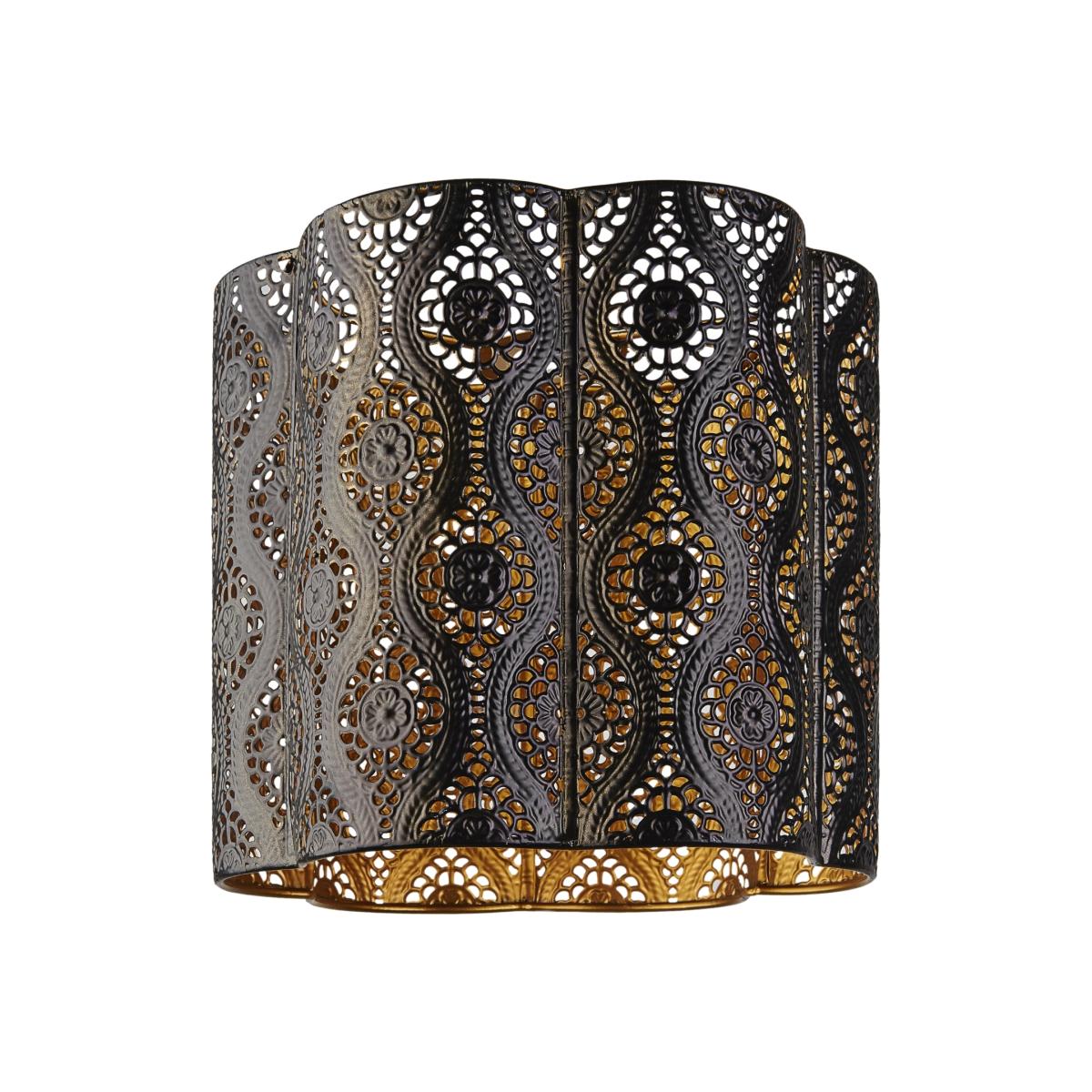 Shaped from black metal with an intricate decorative pattern, the Nocturnal Pendant is a stunning way to dress up your lights and add to the decor of your home. Its rich golden interior contrasts with the dark exterior to create a mystical and exotic aesthetic, reflecting the light of your bulb for a warm, inviting glow.