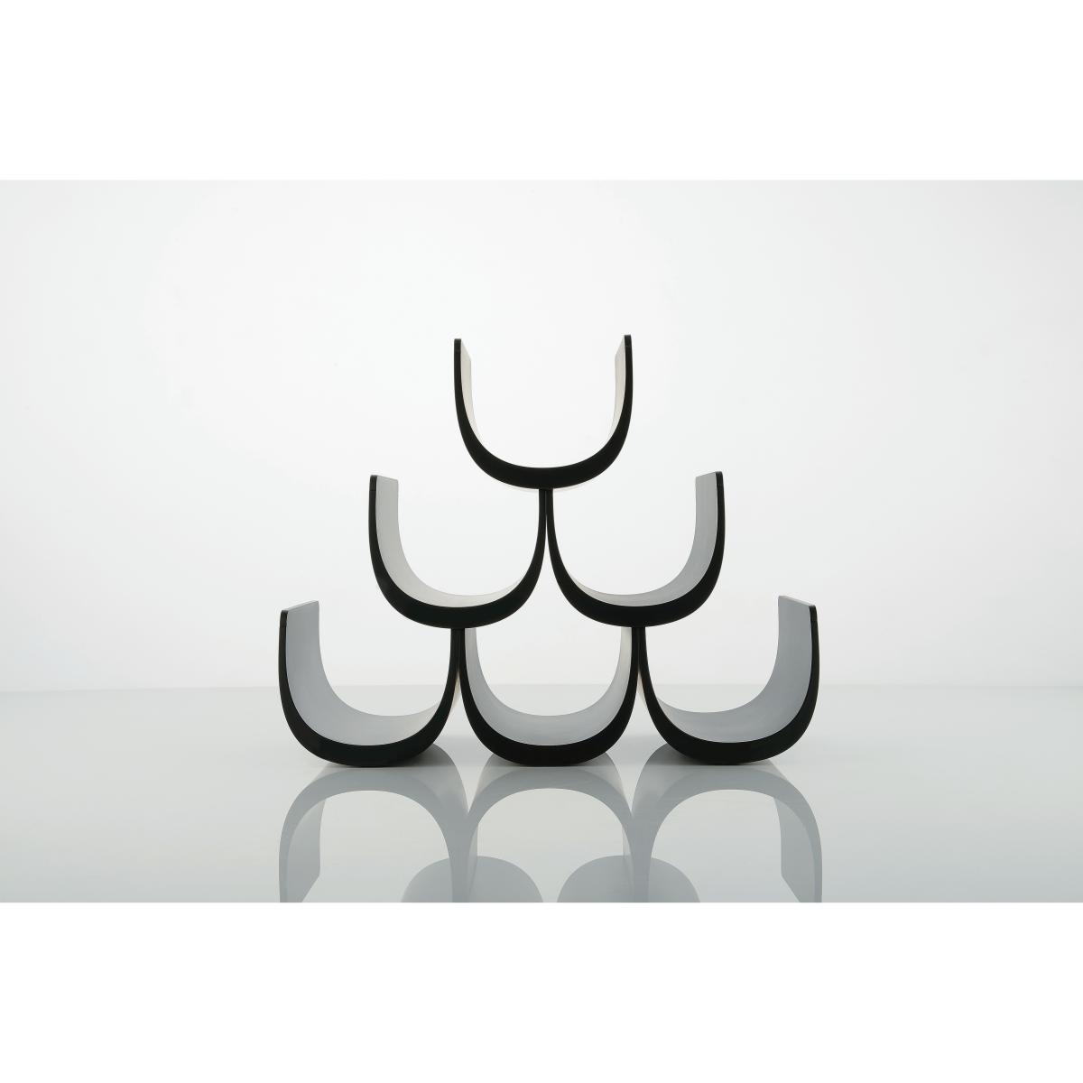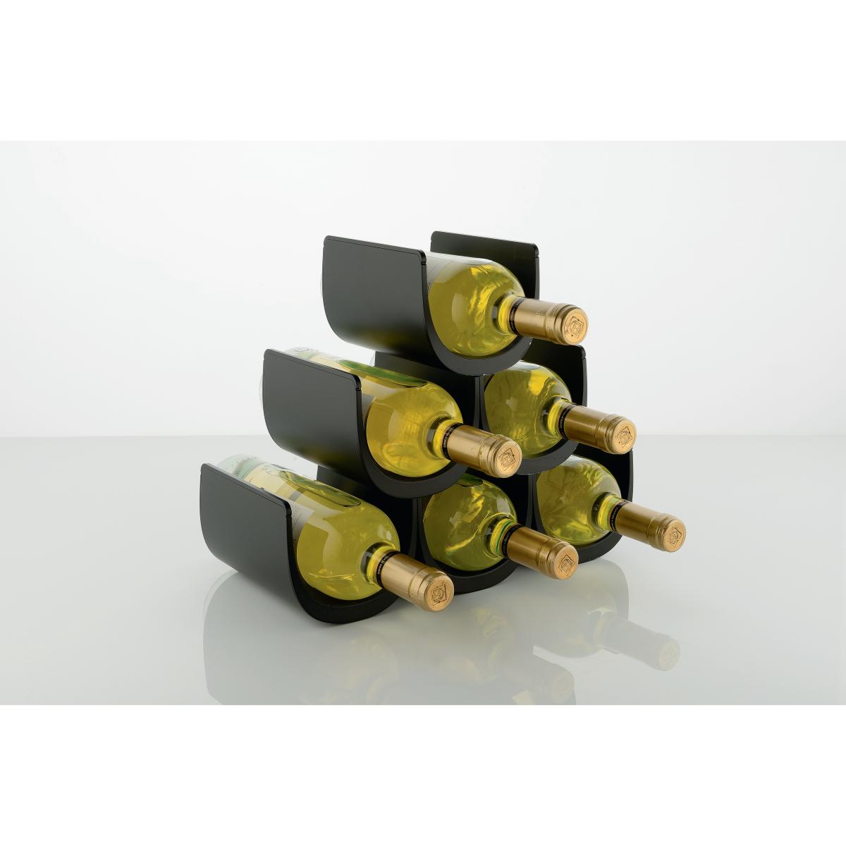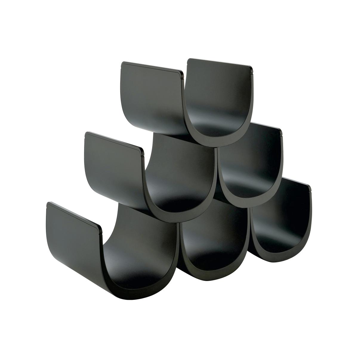 This dark, minimalist wine stand is a versatile piece that works well in contemporary and industrial interiors, thanks to its sleek black finish and clean lines. I love how it combines practicality with a modern aesthetic, making it a statement feature within a kitchen, wine cellar, or dining space. For styling, consider placing it against a neutral wall to highlight its shape, or integrate it into a bar cart or open shelving arrangement for added visual interest. It’s also practical for those who like to keep a few bottles close at hand without cluttering counter space. To create an inviting wine corner, pair it with soft textures like linen or leather, and ensure good lighting to enhance its silhouette.