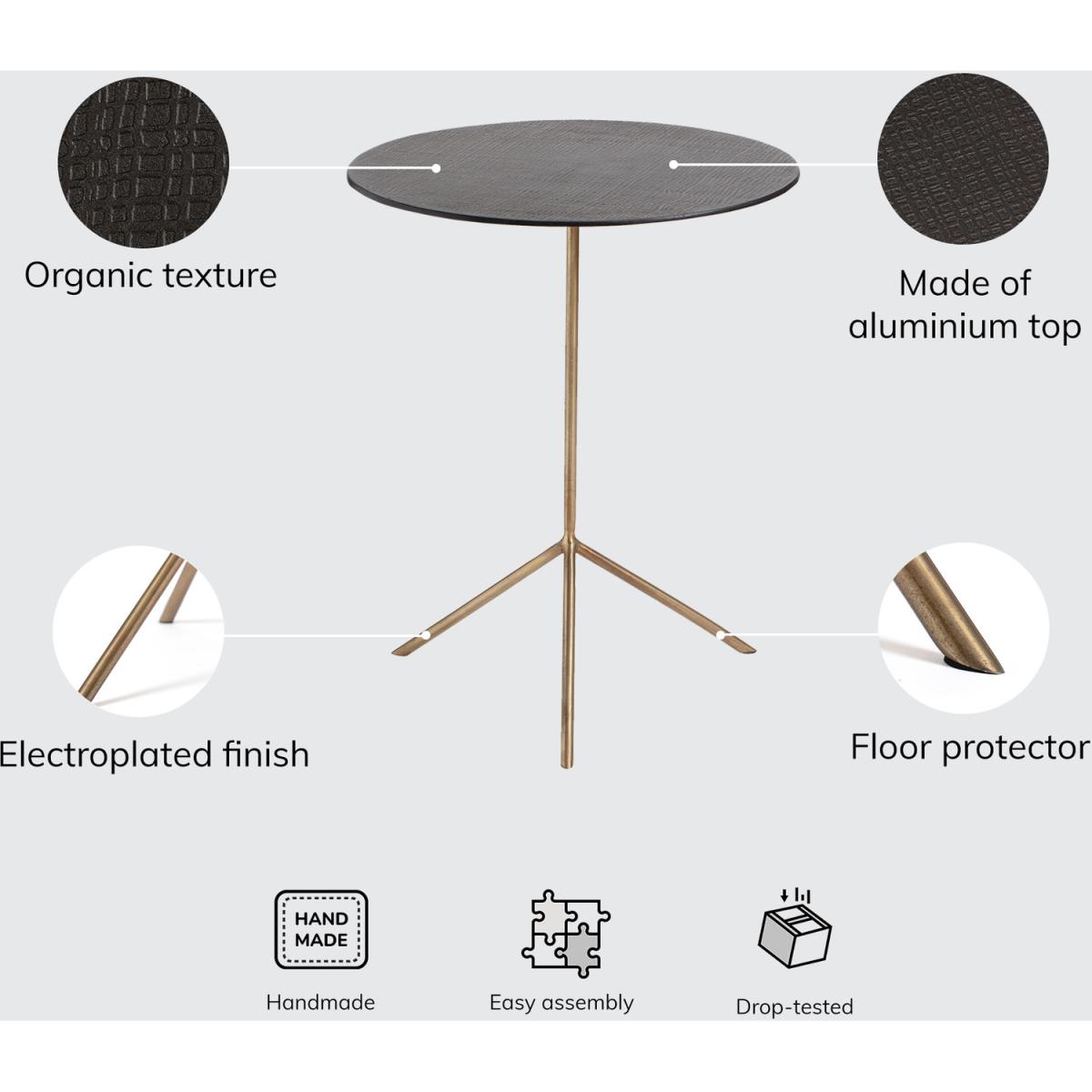 Antique finish and obvious style, this side table is a total statement piece. Check out the organic texture- It is a result of old sand casting techniques. The sleek tripod legs are a nice touch to the circular top. What's more, It is crafted by skilled artisans so it has that handmade quality we love. With the chic top and clean silhouette it is perfect for both maximalists and minimalists.