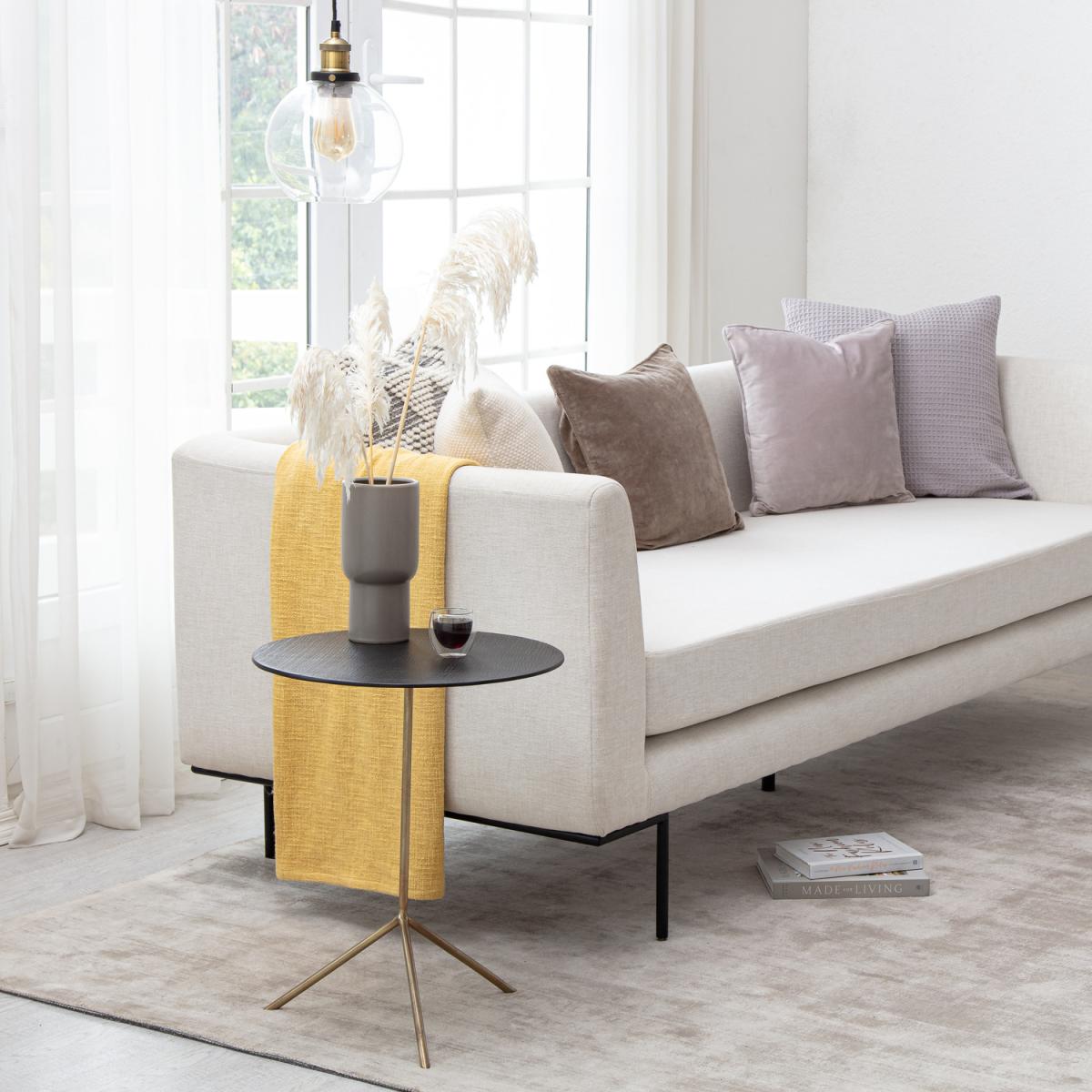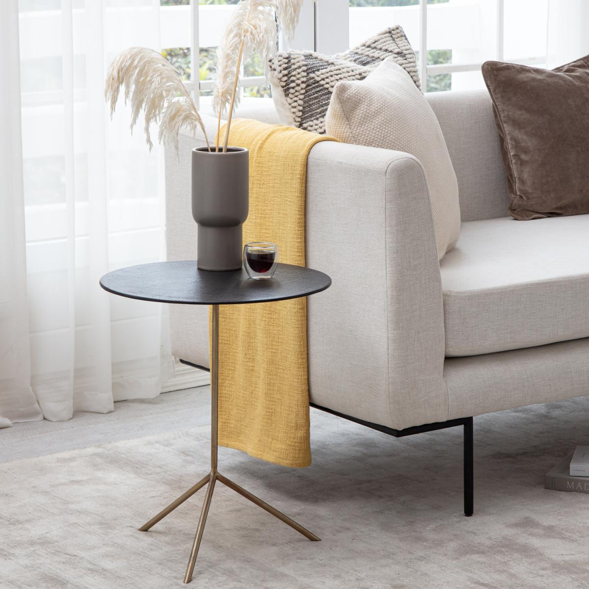 I love this side table for its sleek black and gold finish, which adds a touch of sophistication without overpowering the room. It works particularly well in modern or contemporary interiors, especially those with a monochrome or metallic colour palette. Practical styling tips include pairing it with a statement lamp or decorative objects, and it’s perfectly sized for use next to a sofa or armchair. It’s versatile enough to dress up with a vase of fresh flowers or to serve as a convenient spot for a favourite book or a glass of wine. Its clean lines and understated elegance make it an easy addition to various living spaces.