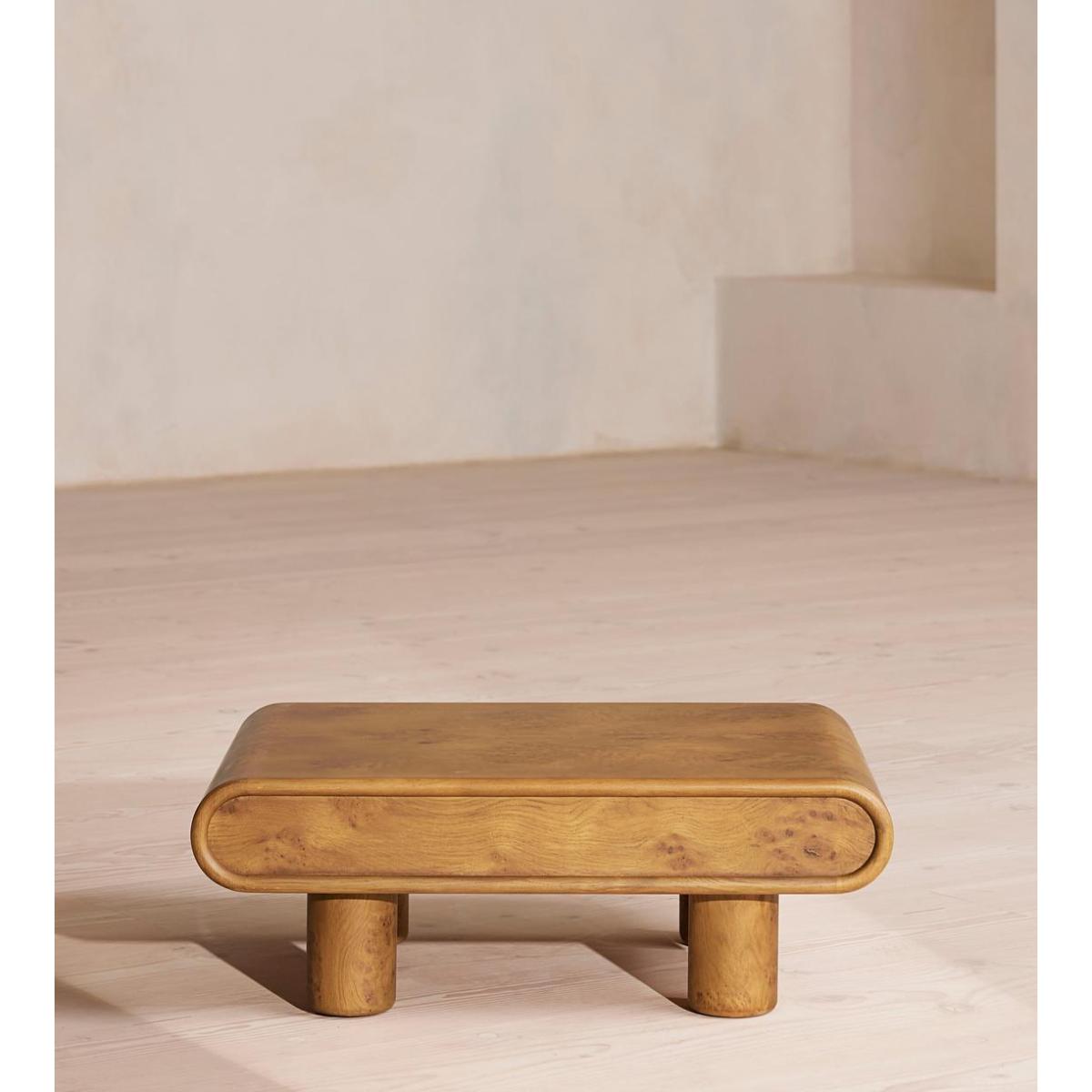 I’m a fan of the Noelle table’s soft, rounded edges and compact footprint - it slots neatly beside a sofa or armchair without dominating the room. The warm walnut finish and sculptural cylindrical legs work equally well in mid-century, Scandinavian or contemporary interiors, adding texture and a nod to vintage styling. For practical styling, keep things minimal: a small potted plant or a sculptural vase, a slim reading lamp and a neat stack of books. Its surface is big enough for your coffee mug and remote controls, so it’s equally at home in a snug living room or a relaxed reading corner.