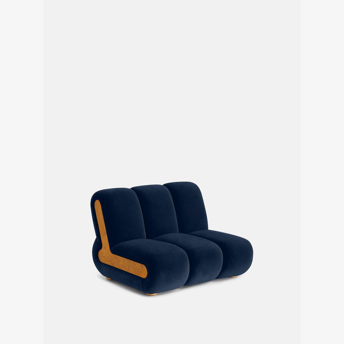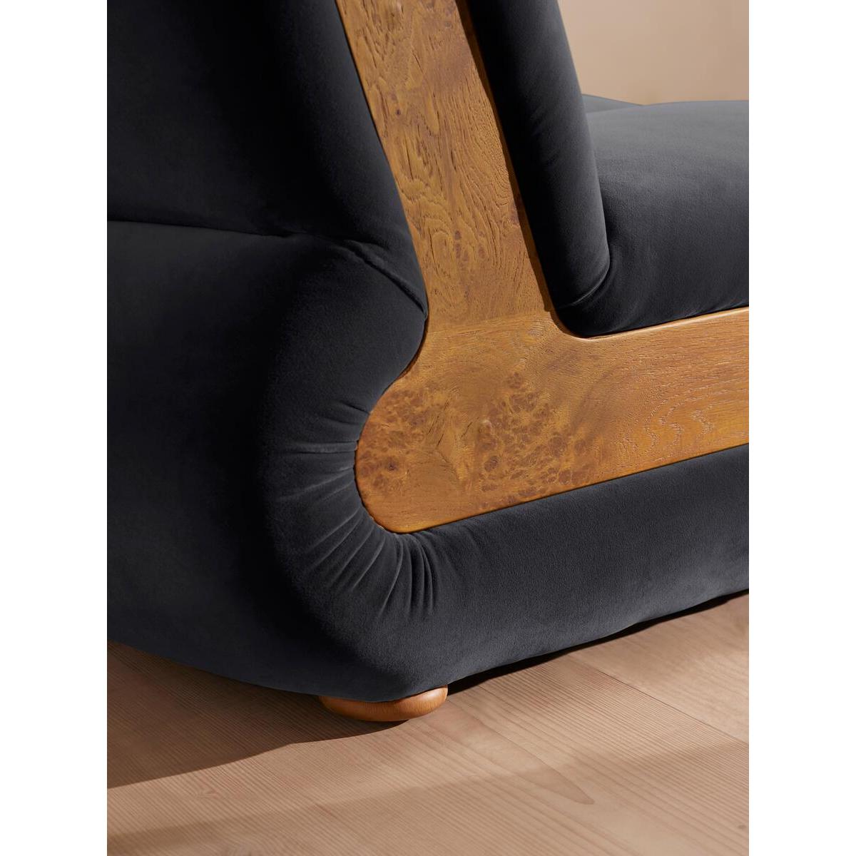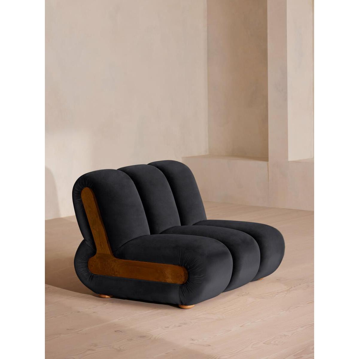 Designed to adapt to any living space, the Noelle modular sofa comprises of straight and curved modules to create the shape you desire, or alternatively a generous armchair if used alone. Rich velvet upholstery is complemented with aged Pippy Oak veneer sides that have a burl finish, while its statement curved shape takes its design cues from the 1970s interiors of 180 House. Armchair Cotton velvet upholstery Aged Pippy Oak veneer Burl finish Inspired by 180 House