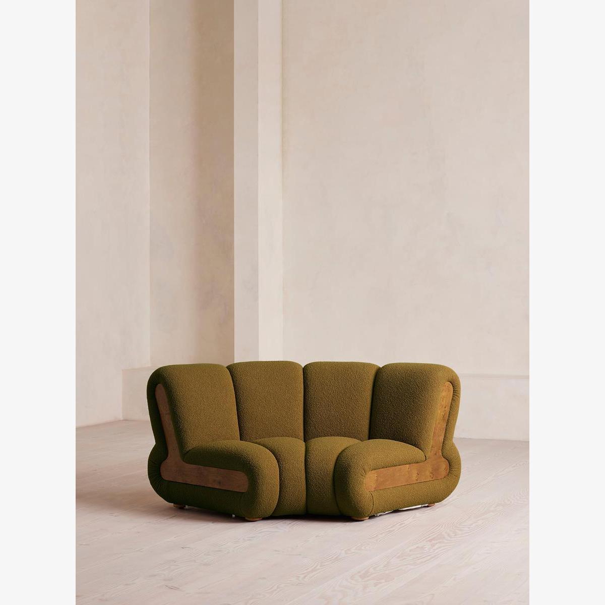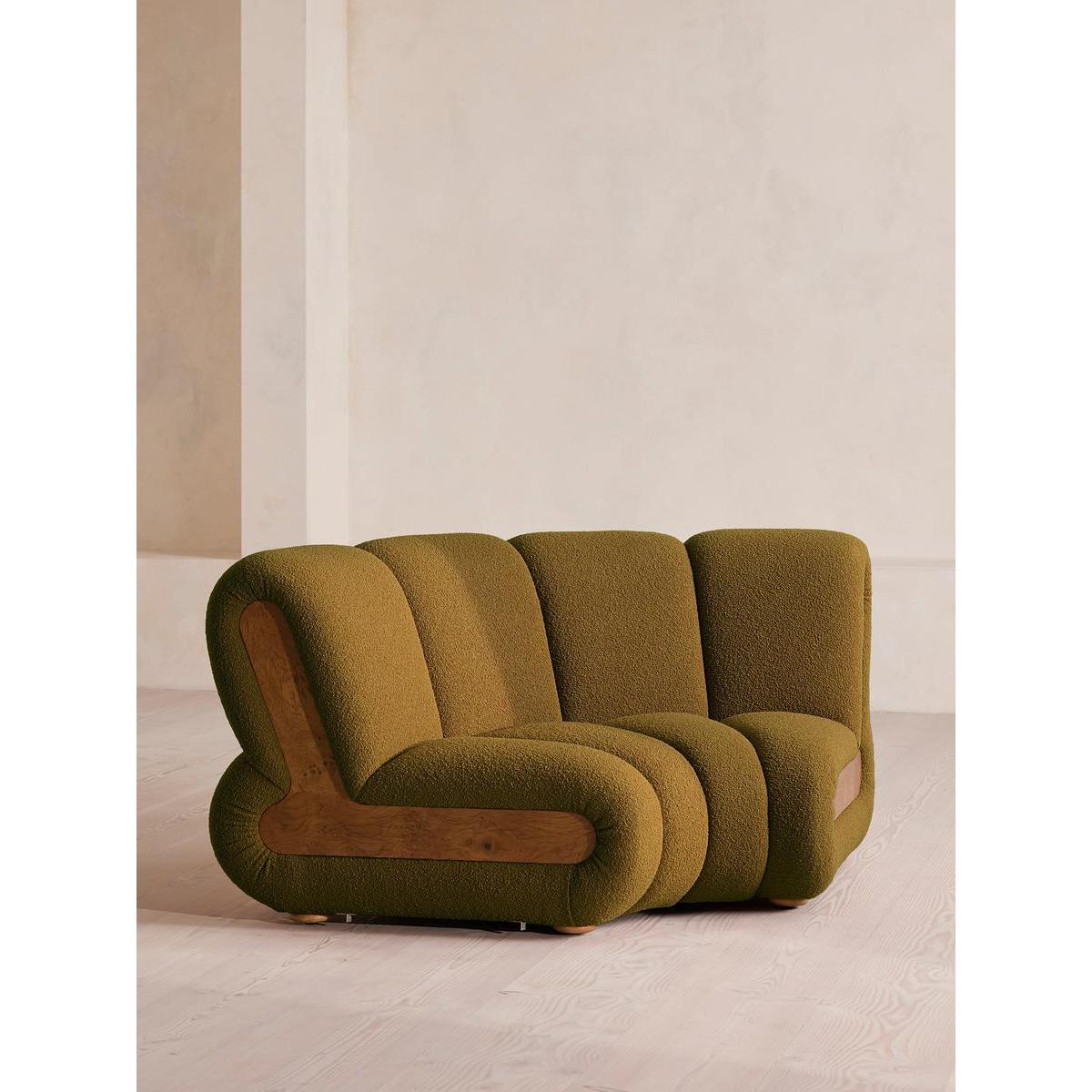 Noelle Modular Curved Armchair, Textured Wool Boucle, Kelp,