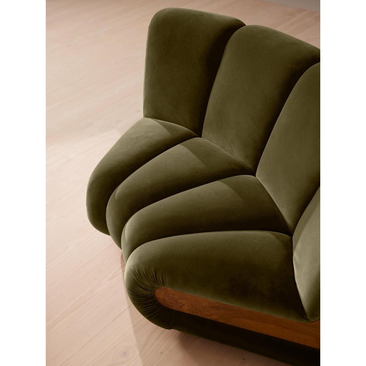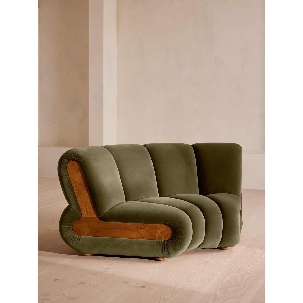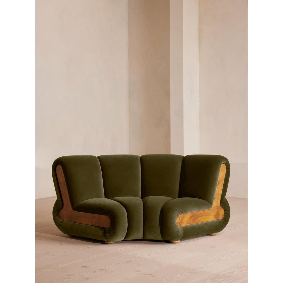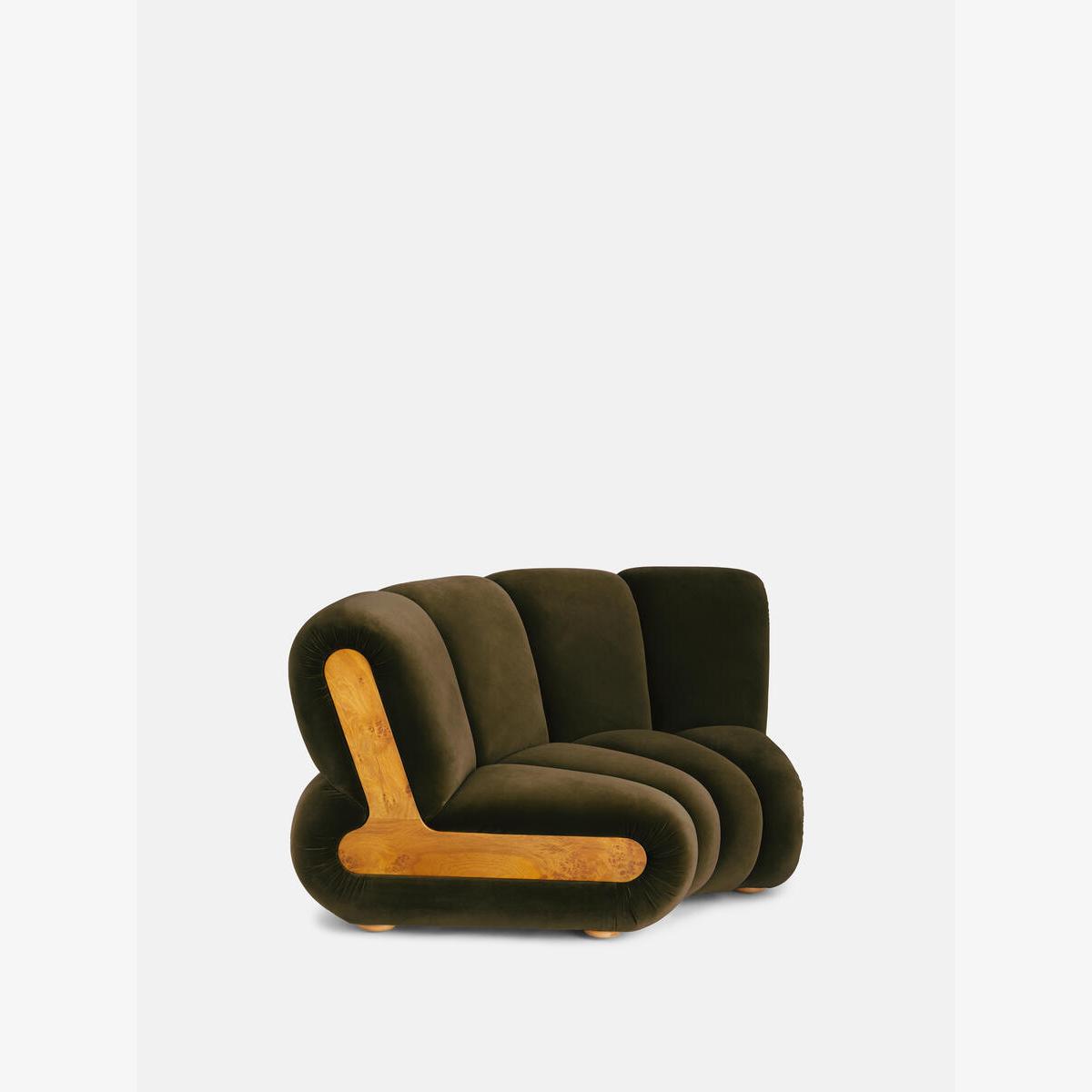 Designed to adapt to any living space, the Noelle modular sofa comprises of straight and curved modules to create the shape you desire, or alternatively a generous armchair if used alone. Rich velvet upholstery is complemented with aged Pippy Oak veneer sides that have a burl finish, while its statement curved shape takes its design cues from the 1970s interiors of 180 House. Armchair Cotton velvet upholstery Aged Pippy Oak veneer Burl finish Inspired by 180 House