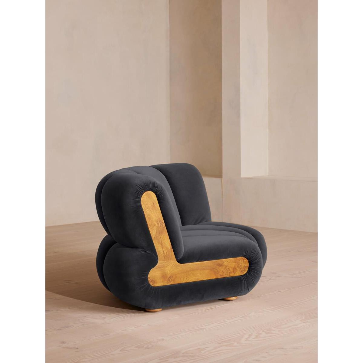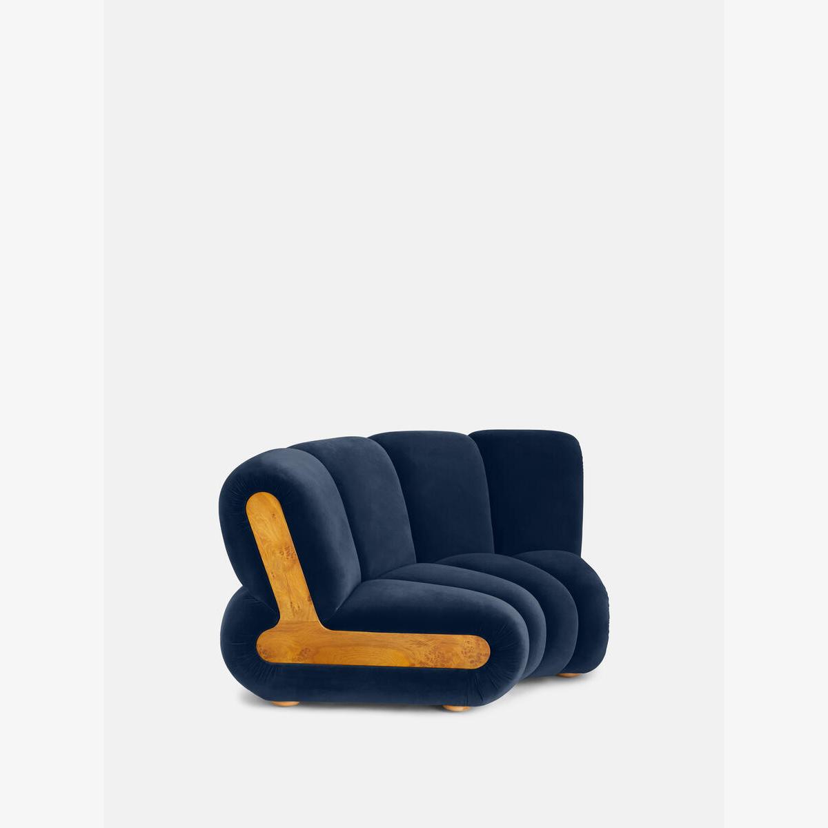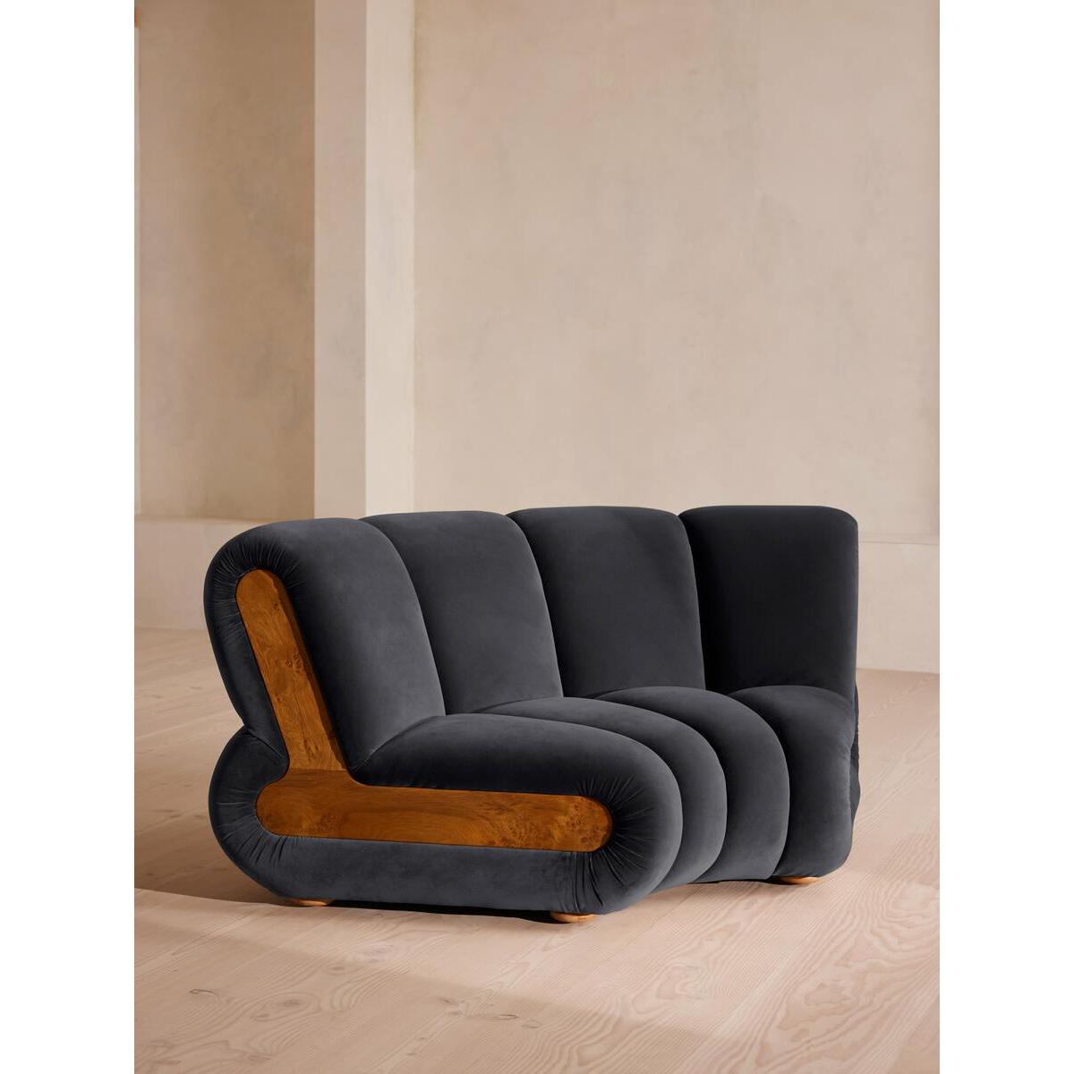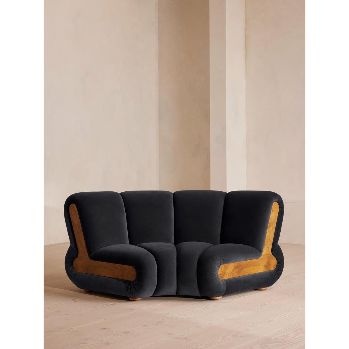 Designed to adapt to any living space, the Noelle modular sofa comprises of straight and curved modules to create the shape you desire, or alternatively a generous armchair if used alone. Rich velvet upholstery is complemented with aged Pippy Oak veneer sides that have a burl finish, while its statement curved shape takes its design cues from the 1970s interiors of 180 House. Curved armchair Cotton velvet upholstery Aged Pippy Oak veneer Burl finish Inspired by 180 House