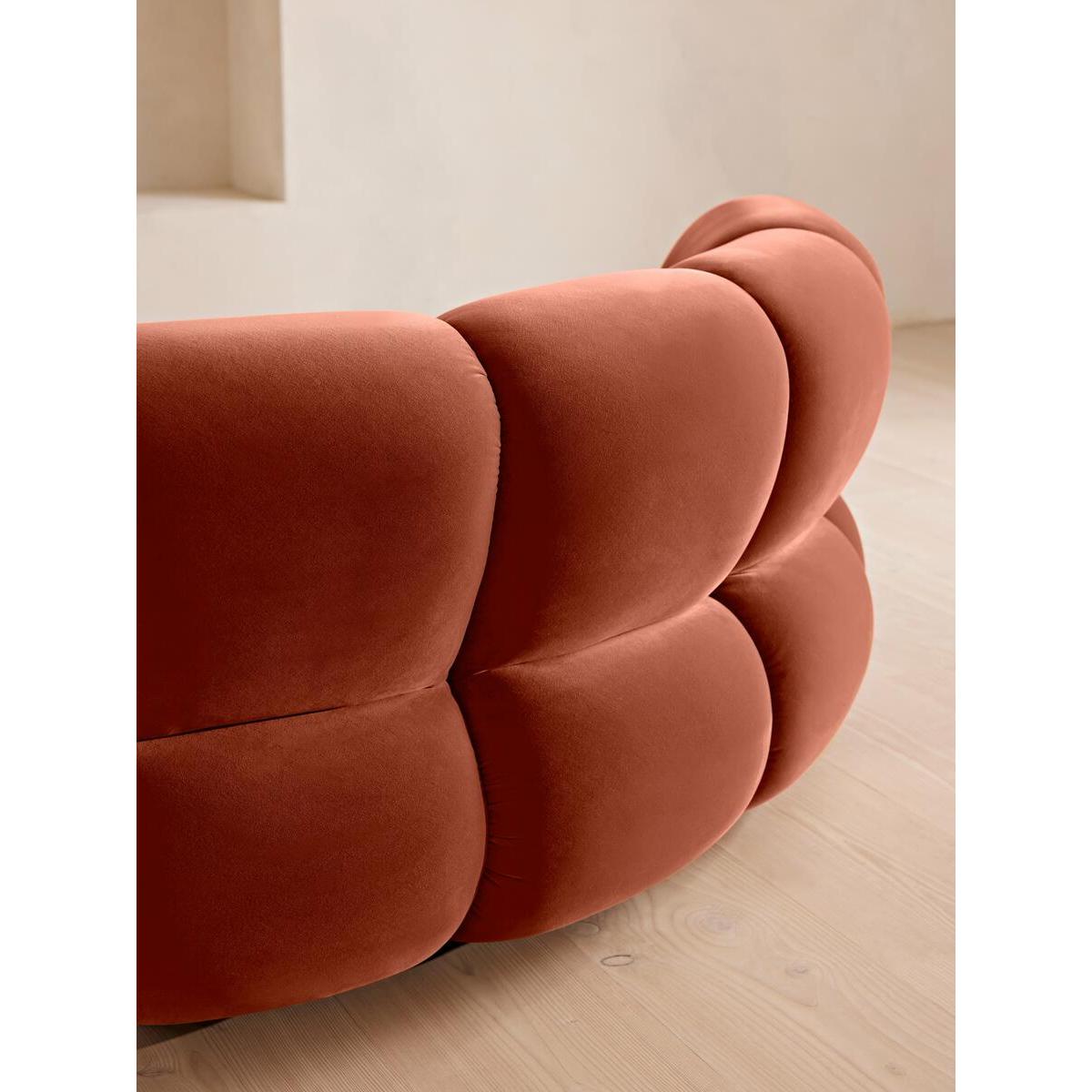 I’m a fan of the Noelle chair in rust velvet because its curved silhouette brings both comfort and character to a room, while the warm tone works equally well in mid-century, boho or contemporary settings. Its plush upholstery makes it a great anchor for a reading corner or as a stand-alone accent piece. For styling, pair it with a pale oak side table and a neutral linen cushion to soften the depth of the velvet. Add a low-pile jute or wool rug in natural shades and a brass-finished floor lamp to lift the ensemble. Thanks to its modular design, you can float it in the centre of a room or tuck it into a bay window to maximise the curve.