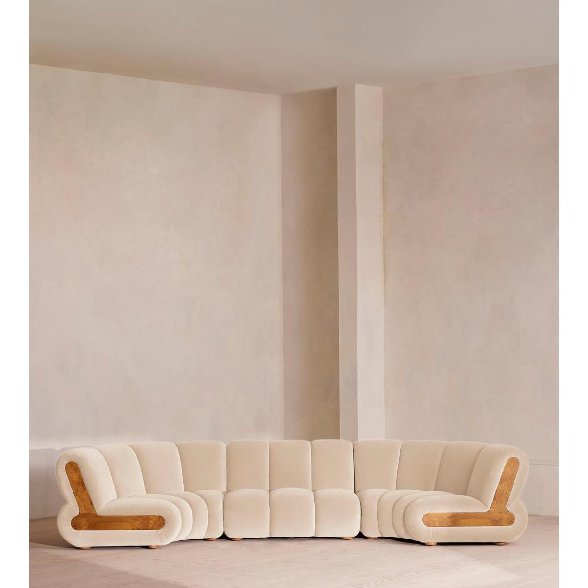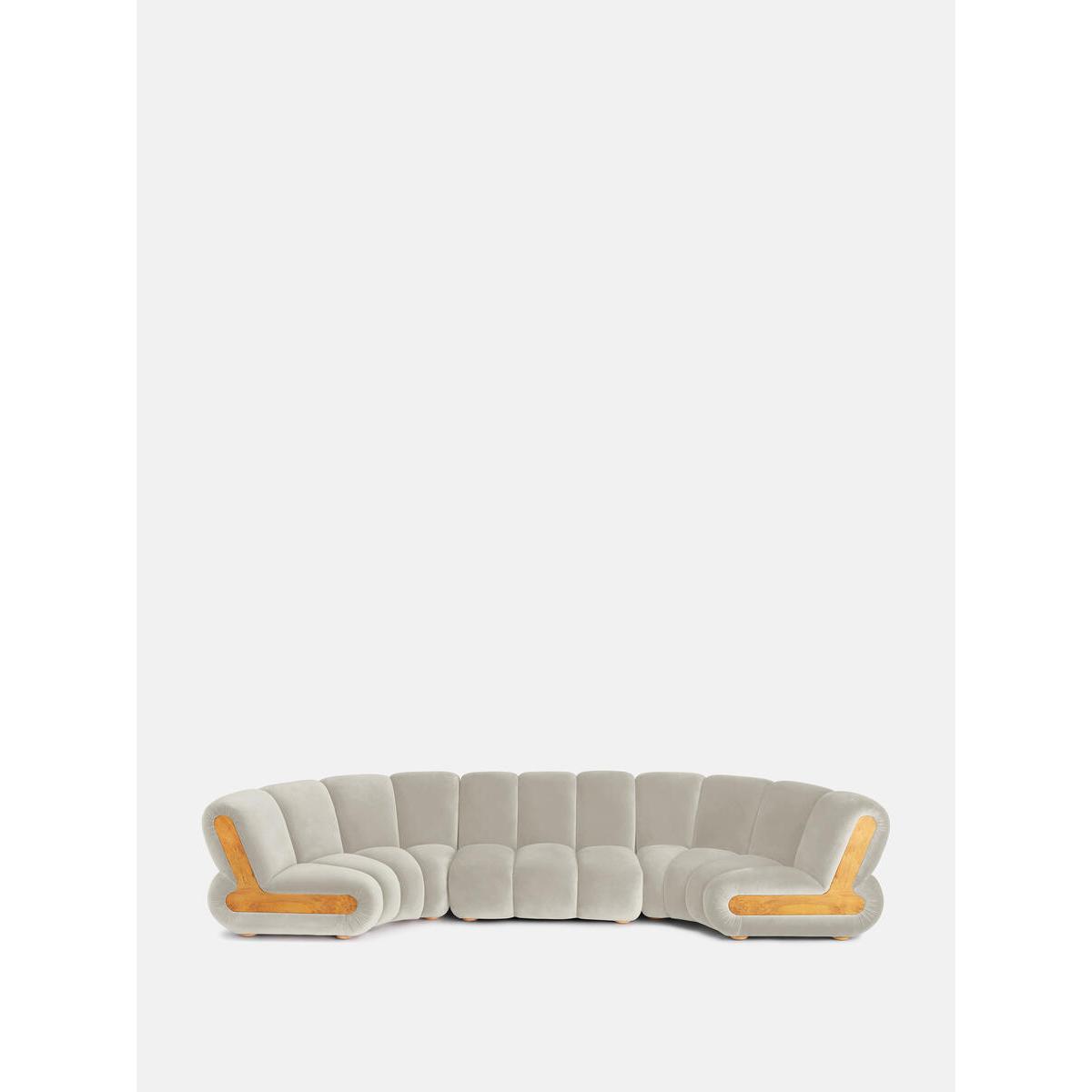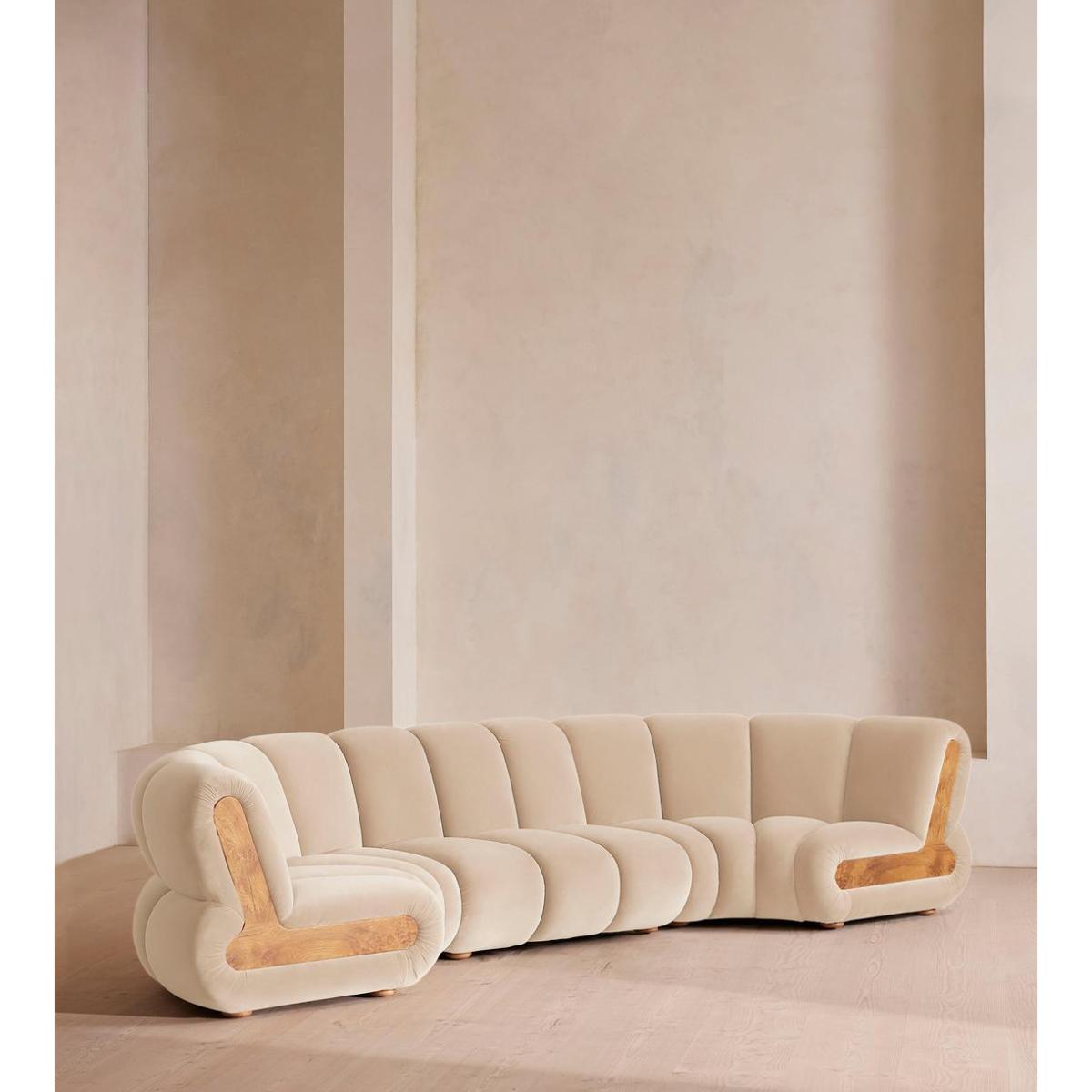 Noelle Modular Curved Sofa, Six Seater, Velvet Porcelain