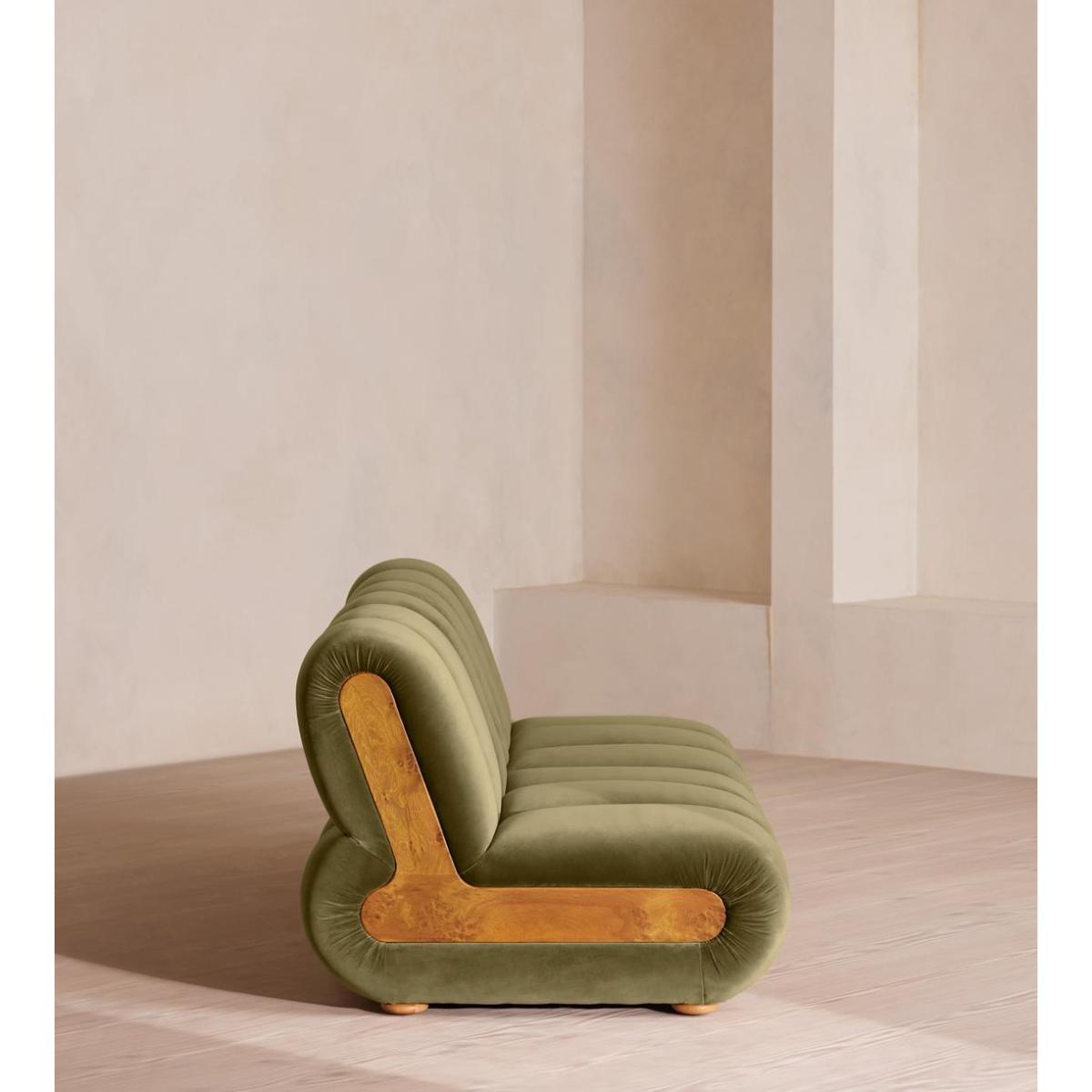 Designed to adapt to any living space, the Noelle modular sofa comprises of straight and curved modules to create the shape you desire, or alternatively a generous armchair if used alone. Rich velvet upholstery is complemented with aged Pippy Oak veneer sides that have a burl finish, while its statement curved shape takes its design cues from the 1970s interiors of 180 House. Four seater sofa Cotton velvet upholstery Aged Pippy Oak veneer Burl finish Inspired by 180 House