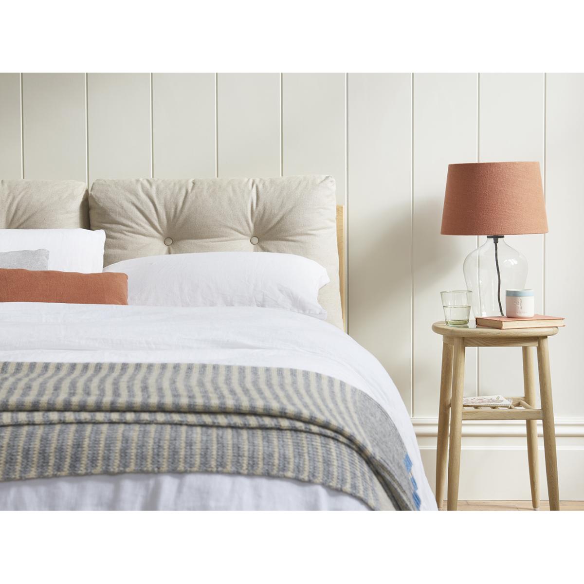 Scandi in all the right places with a solid oak frame. And a big dose of squish for bedtime reading.