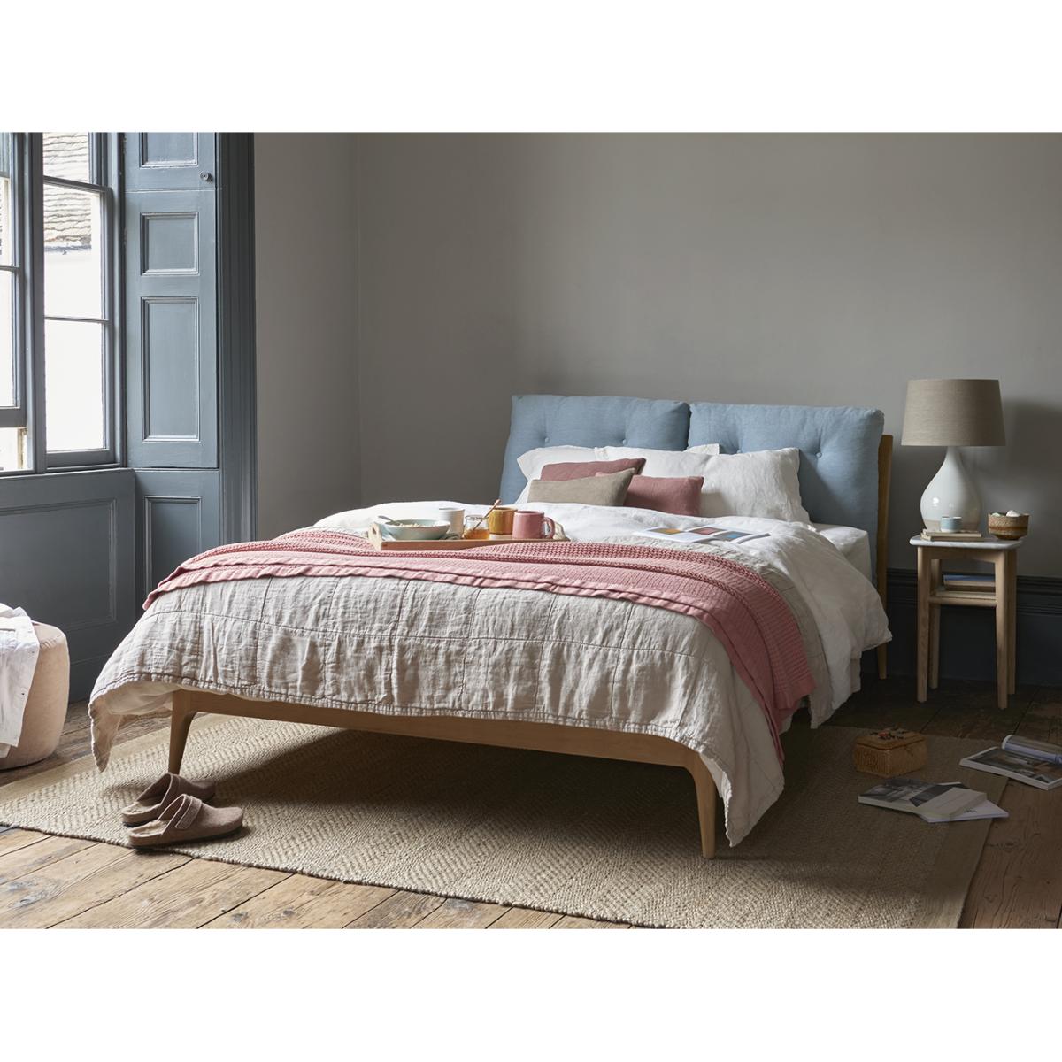 Scandi in all the right places with a solid oak frame. And a big dose of squish for bedtime reading.