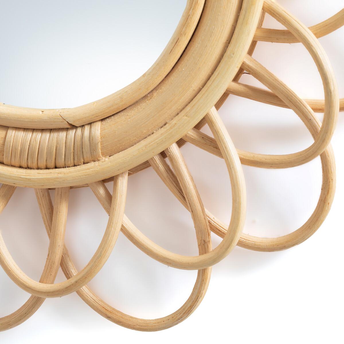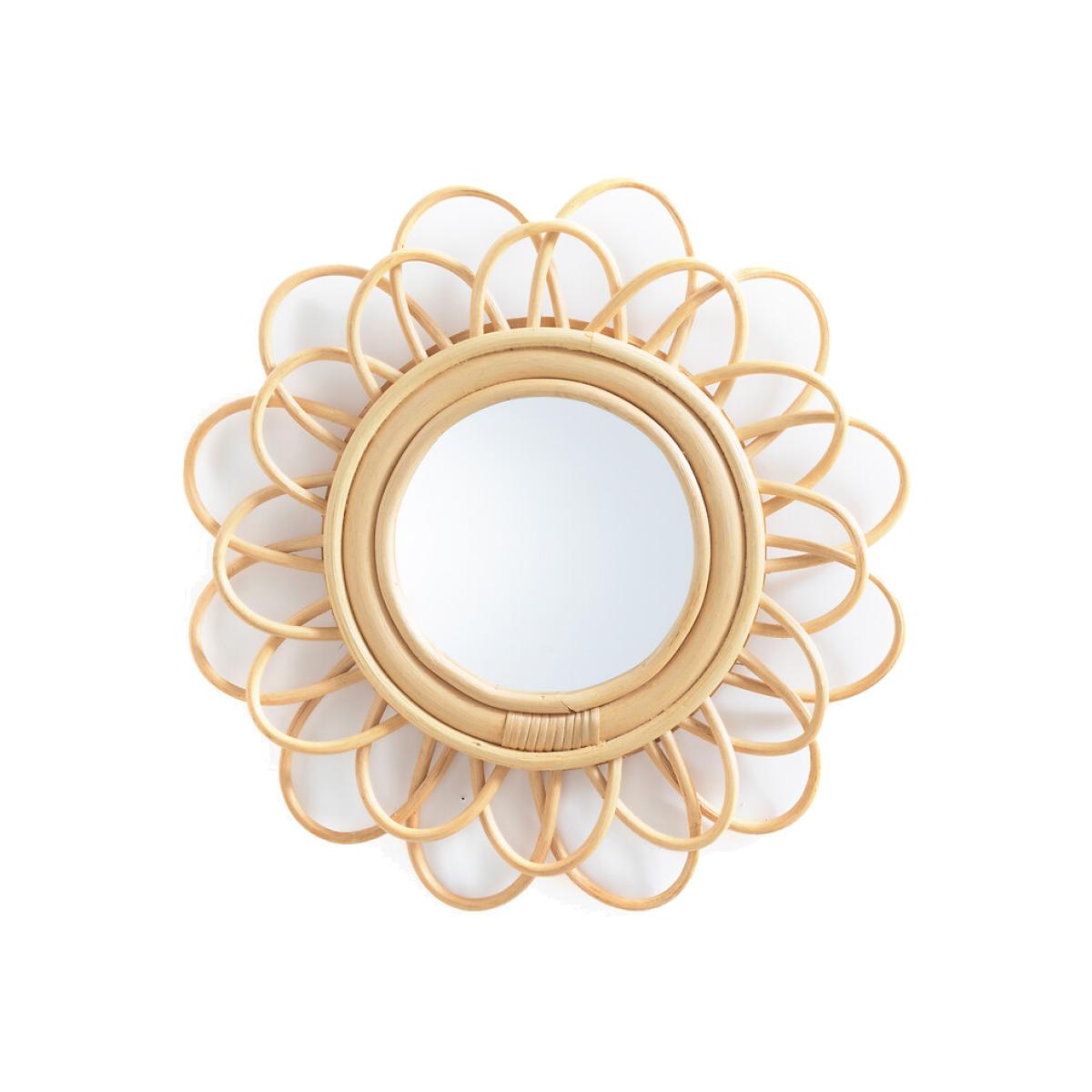 Make your walls bloom with this double flower mirror. Why not include it in a collection of mirrors for a bohemian look. Product Details • Rattan frame • Wall fixing (screws and plugs not supplied)Dimensions • Diameter: 36cm • Thickness: 2.5cm