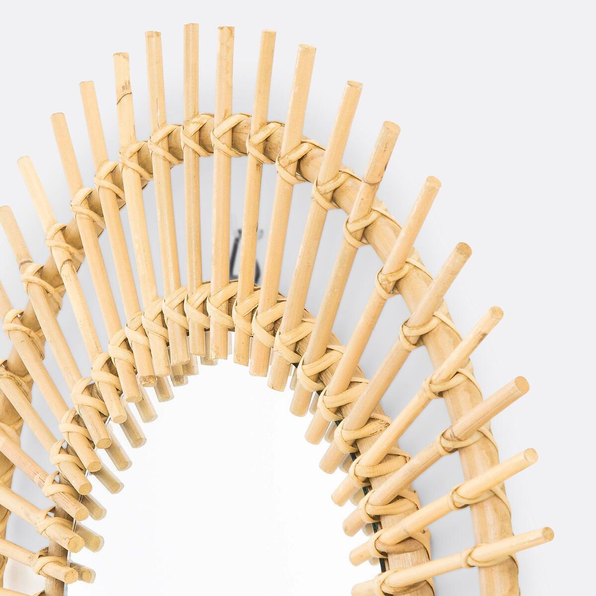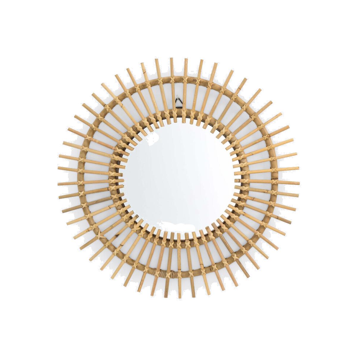 The Nogu cane sunburst mirror. Bohemian decorative spirit for this mirror which easily combines with rattan or wooden furniture. Its sunburst design will bring a touch of warmth to your home. Product Details • Rattan frame • Wall fixing (screws and plugs not supplied).Dimensions • Diameter 60 x D3cm.