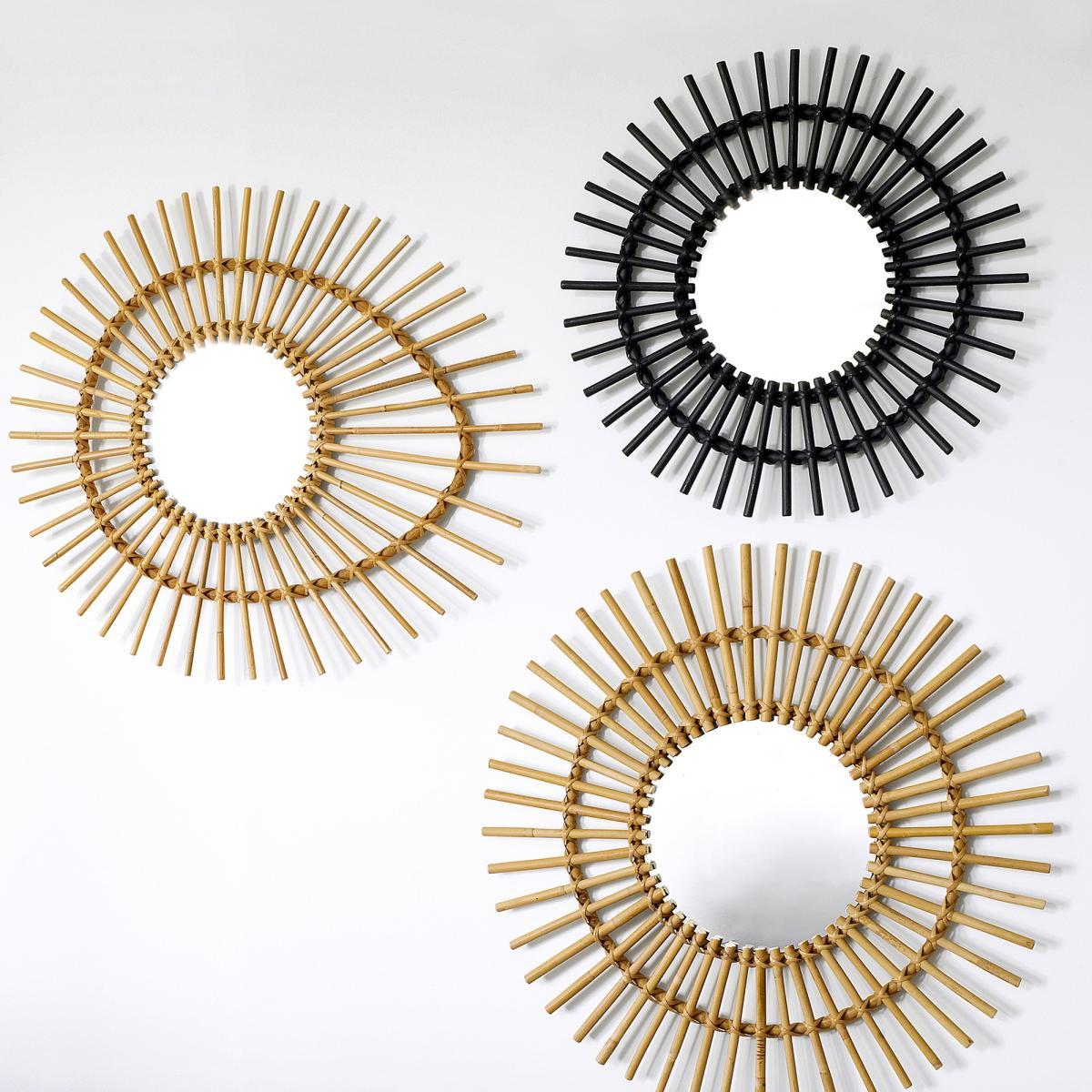 Nogu Eye-Shaped Vintage Rattan Mirror
