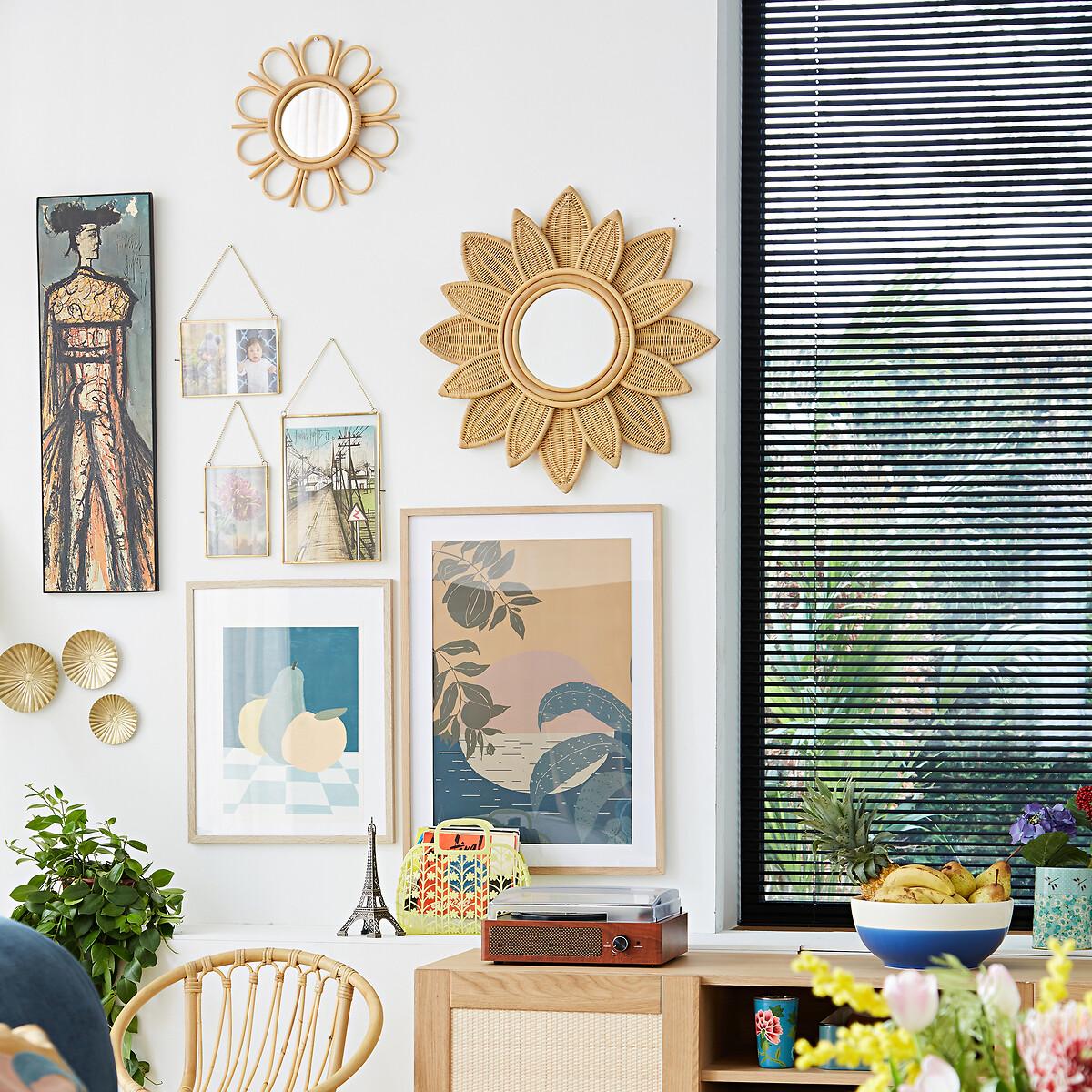I’m a fan of this floral rattan mirror for the way its natural weave adds warmth and texture without overwhelming a room. At roughly 60 cm across, it’s a perfect size to zone in on narrow walls - think hallways or above a slim console - and it helps bounce light back into the space. Styling-wise, it suits boho, coastal or Scandi schemes best but also works as a laid-back accent in more contemporary spaces. Try pairing it with a small shelf display of woven baskets or a cluster of trailing plants, and keep surrounding décor simple so the mirror’s sunburst shape remains the focal point.