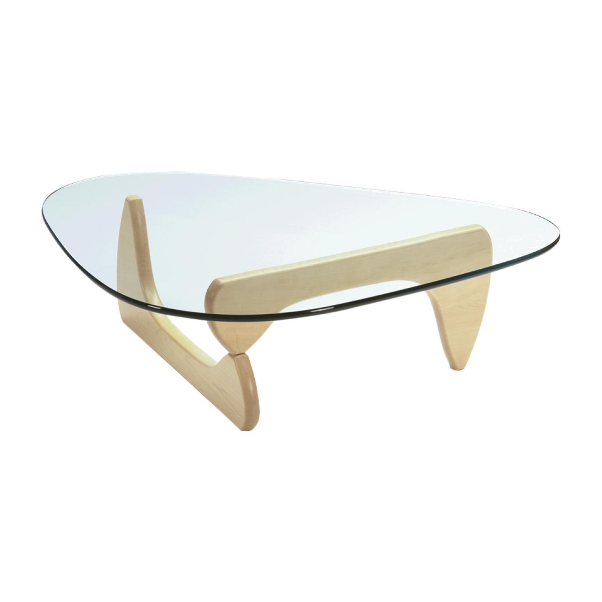 This Noguchi maple table represents designer Isamu Noguchi's belief that 'everything is sculpture'. The table possesses a versatility in its style that makes it appear perfectly at home within both contemporary and traditional spaces. A true lesson in how to combine materials to achieve aesthetic harmony, the table's curved legs are crafted from rich maple wood and seem to effortlessly and delicately support the freeform glass surface. The Japanese-American designer aims to blur the boundaries between monumental sculpture and organic furniture design. The original design was created when Noguchi was approached about designing a coffee table. He created a small model, heard nothing back and left to work overseas. When he returned, the table design had been stolen and manufactured without his knowledge. Noguchi resolved to create his own inimitable table with enhancements to prove that, while anybody can make a three-legged table, only an expert can achieve perfect balance. Noguchi's signature is subtly etched into the glass as a mark of authenticity. The table would make an elegant addition to your living space, its lasting style is transcendentally contemporary and explains how this coffee table has come to be renowned globally as a 20th century design classic.