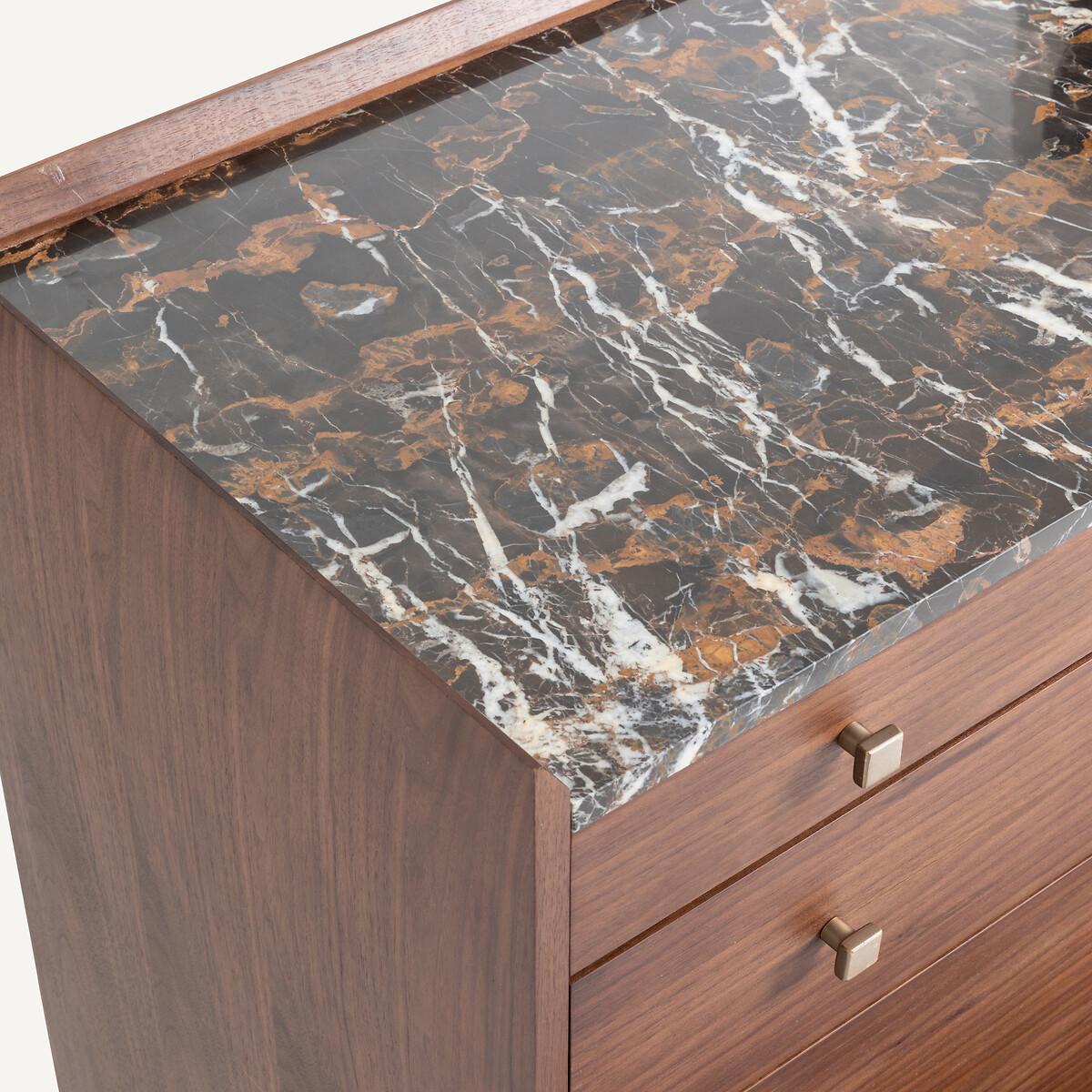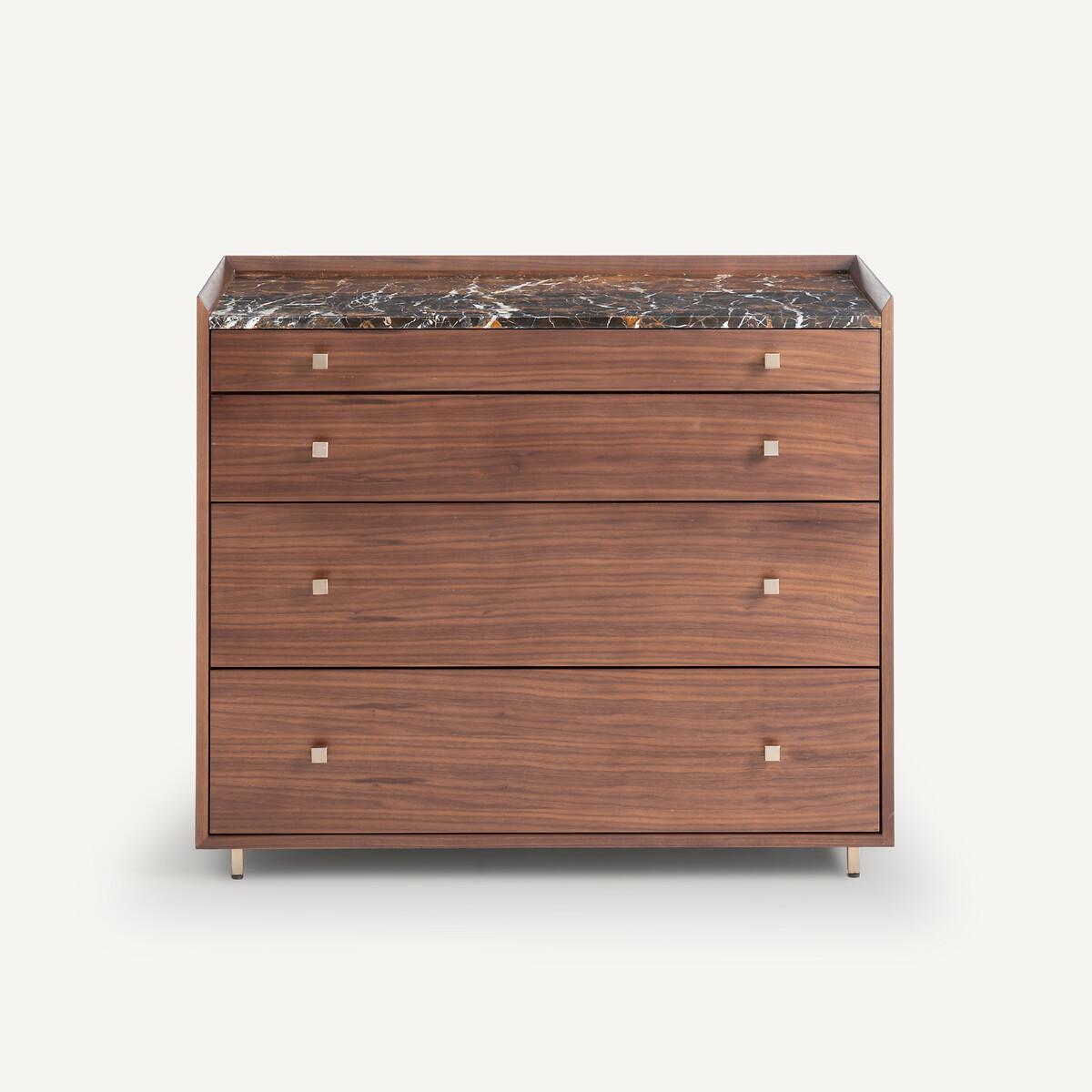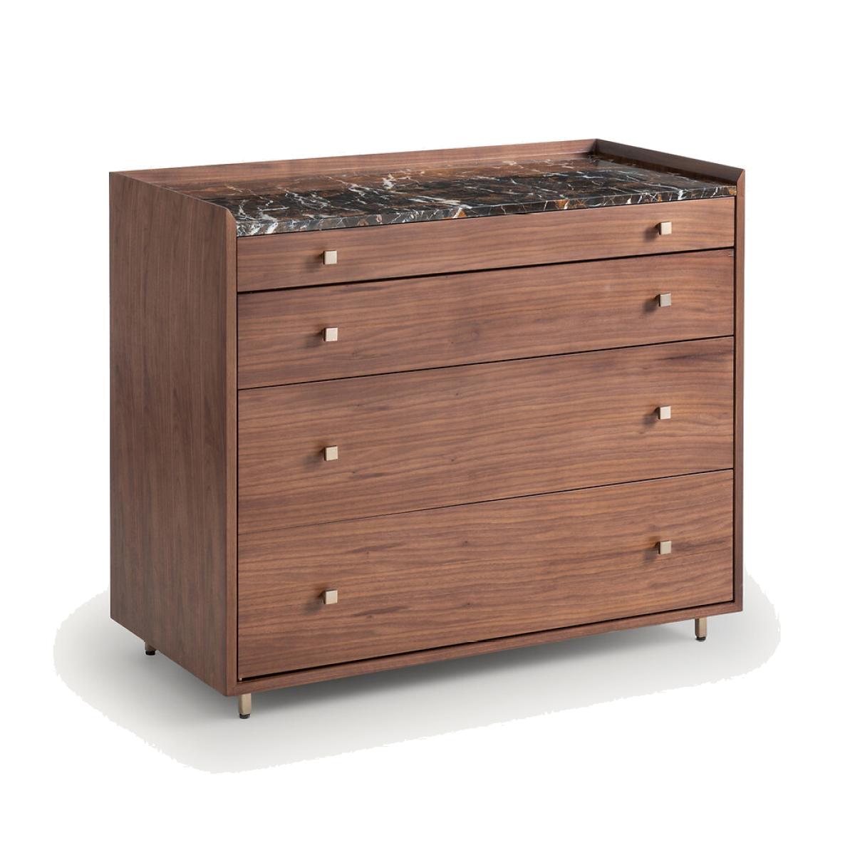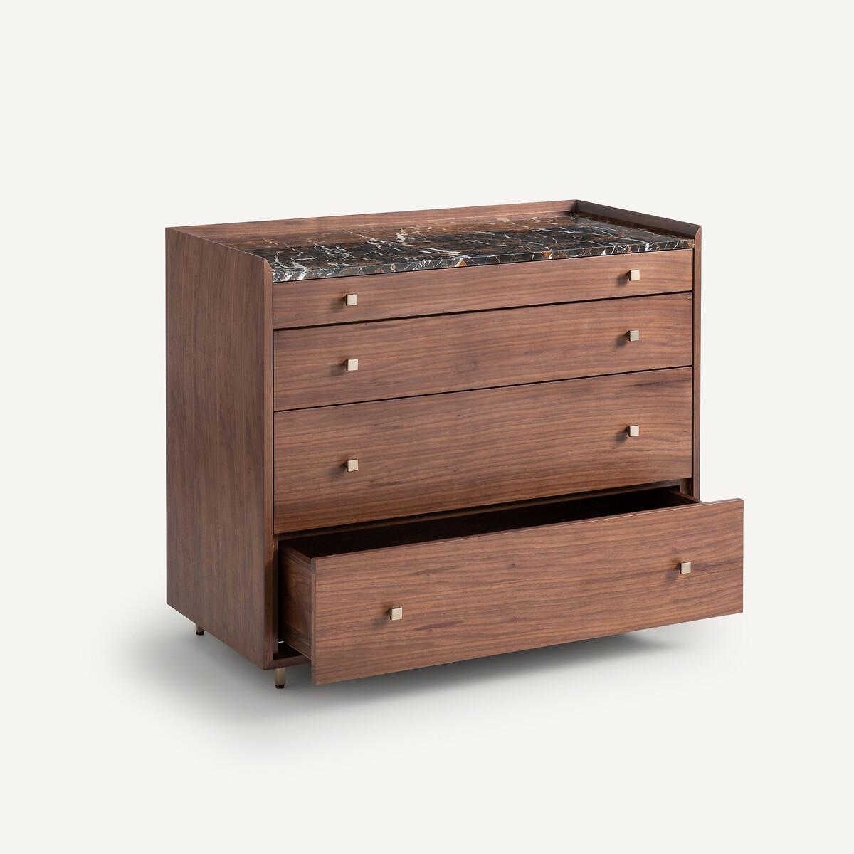 This range in walnut and amber marble has a superb quality and mix of high-quality materials. It offers particularly neat details: chamfered edges, soft closing drawers, matte finish metal handles. Noham is a signature piece of our internal design studio AMPM.Product Details • Structure and drawers in walnut veneered MDF with nitrocellulose finish • Amber marble tabletop: each piece is unique, the marbling can be more or less marked. • Chamfered edges in solid walnut • 4 drawers with soft closing system * (except for the first drawer) • Handles and feet in matte champagne finish metal* This furniture is equipped with German brand hardware: reliable, discreet and functional. These accessories ensure the longevity of your product. Care Advice. Marble is a naturally porous material, sensitive to heat. Care information: • Wipe up any spillages immediately with a white cloth soaked in warm water and wrung out. • Avoid placing hot objects on the surfaceDimensions. Overall Dimensions • Width: 90cm • Height: 76cm • Depth: 45cm. Usable dimensions • 1st drawer:L78 x H5 x D34cm • 2nd drawer:L78 x H7 x D34cm • 3rd and last drawer:L78 x H14 x D38cm • Height of legs: 4.5cmDelivery:. Sold pre-assembled.. Note! Please check that all access points are large enough to accommodate your delivery (doors, stairs, lifts). • WOOD FROM SUSTAINABLY MANAGED FORESTS. FSC® certified wood comes from forests that are environmentally, socially and economically well managed. Dimensions and weight of parcel • 1 parcel • L96 x H82 x D51cm. 70kg