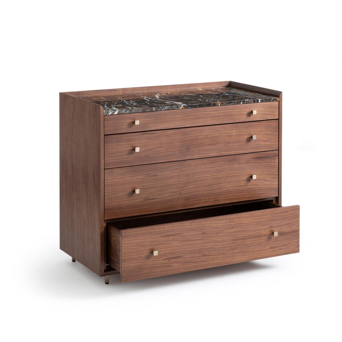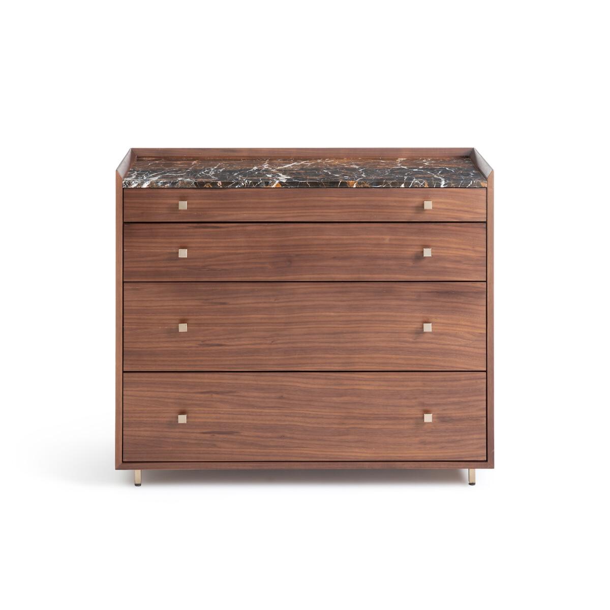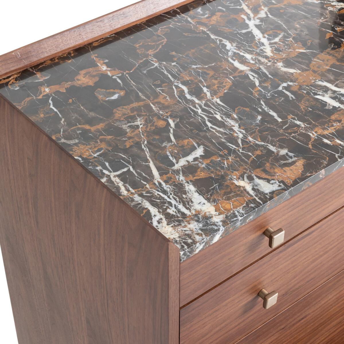 Noham Walnut and Amber Marble Chest of Drawers