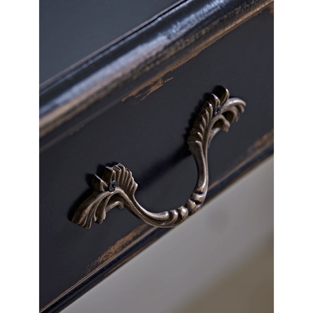 This console table has a classic yet distressed finish that adds character and charm to various interiors. I love it because it works equally well in traditional or eclectic settings, providing a sophisticated focal point in hallways, living rooms, or even beneath a large mirror. Its practical size makes it perfect for displaying a few carefully chosen decorative pieces, or for balancing photos, lamps, and small plants. When styling, consider pairing it with metallic accents or vintage accessories to enhance its antique vibe. Keep the decor within the same colour palette for a cohesive look, or add bold colours through objects to create contrast. Its timeless appeal makes it a versatile piece that can adapt as your interior style evolves.
