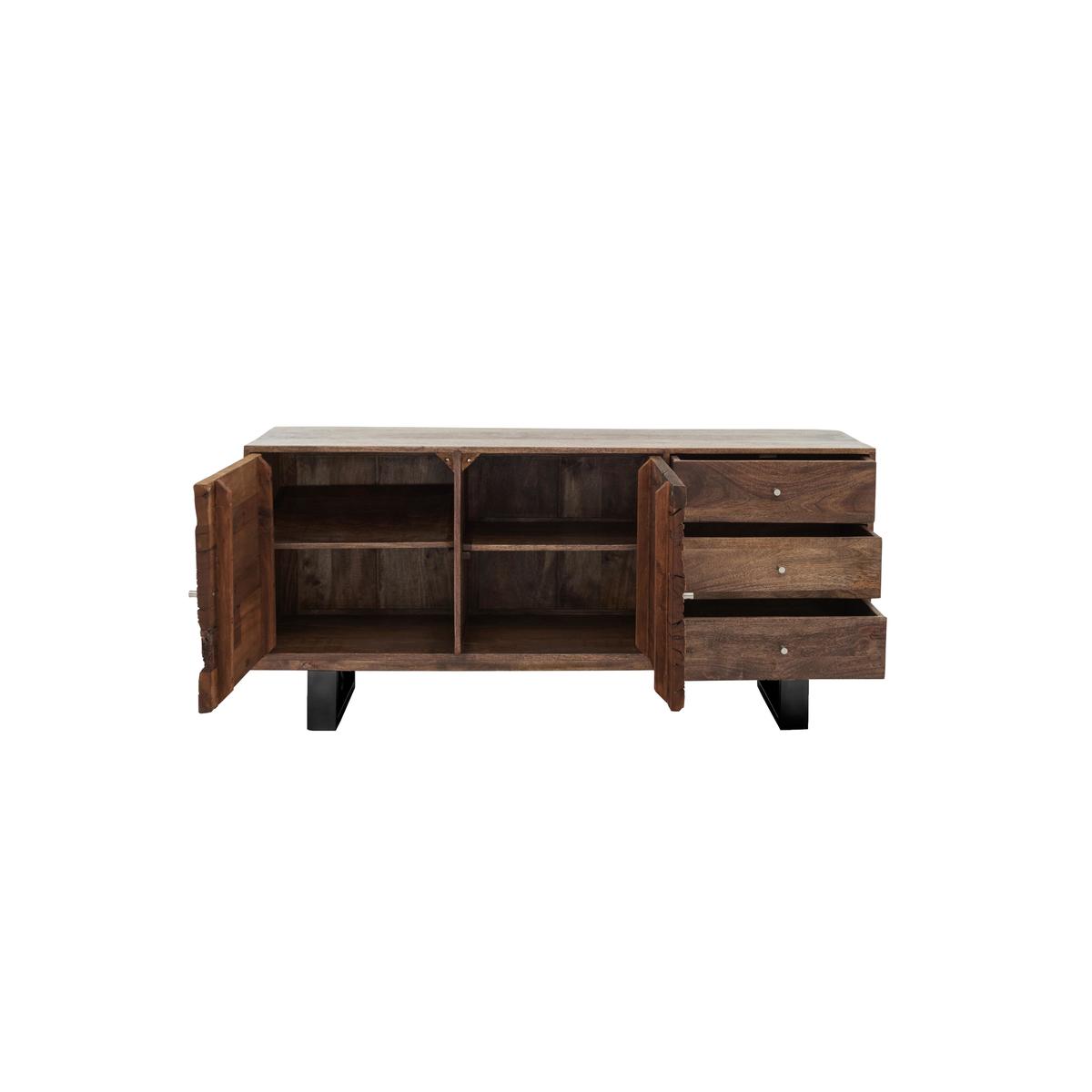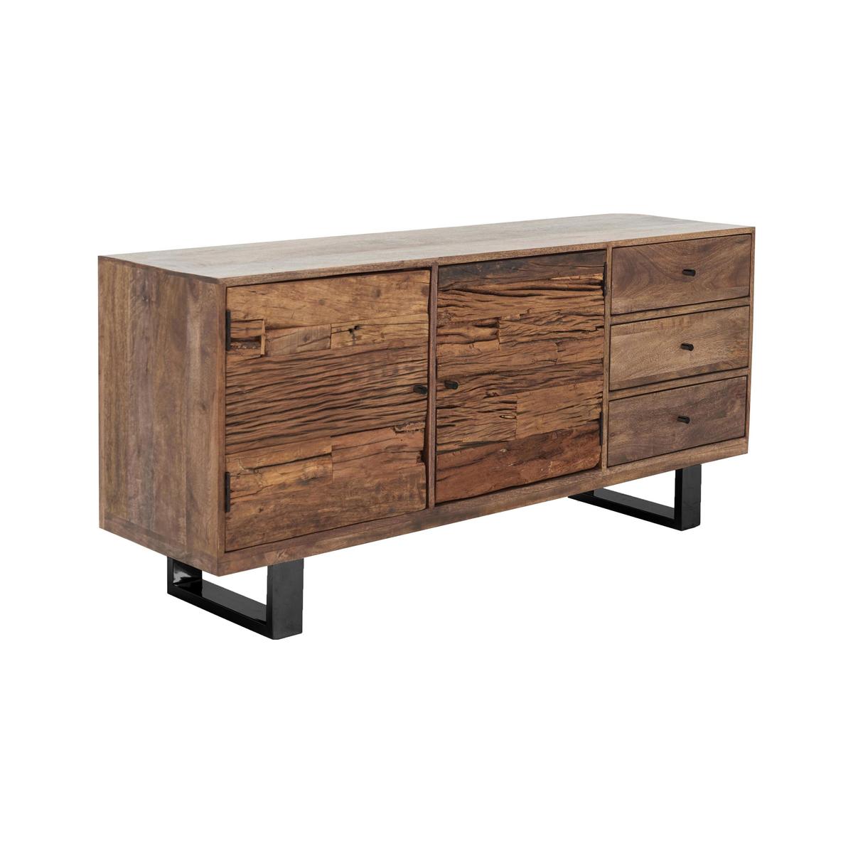 Beautifully crafted from vintage railway sleepers and mango wood, this spacious large sideboard oozes charm and character. Why you'll love it Large sideboard gives you roomy storage and plenty of character. Authentic industrial style in rustic wood and iron. Made with reclaimed vintage railway sleepers from India. Front has striking planked effect. U- shaped black iron legs. This large sideboard is part of our Noir range. What you need to know Double- door cupboard has 2 shelves. Made of reclaimed railway sleepers and mango wood. Each plank of reclaimed wood has unique grain, knots and markings and colour variations. This reclaimed wood has an irregular distressed surface and a natural untreated finish. We recommend using coasters and placemats at all times. WARNING! Furniture can tip over unexpectedly and cause injury. This item must be fixed to a wall using the anti- tip kit provided. Be sure to use the correct wall fixings suitable for the walls in your home. Furniture Village is not able to fix anti- tip devices for you. Seek professional advice if you are unsure.