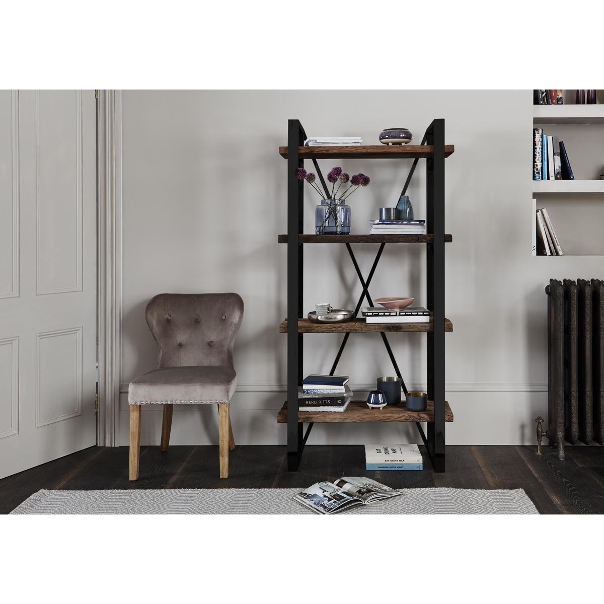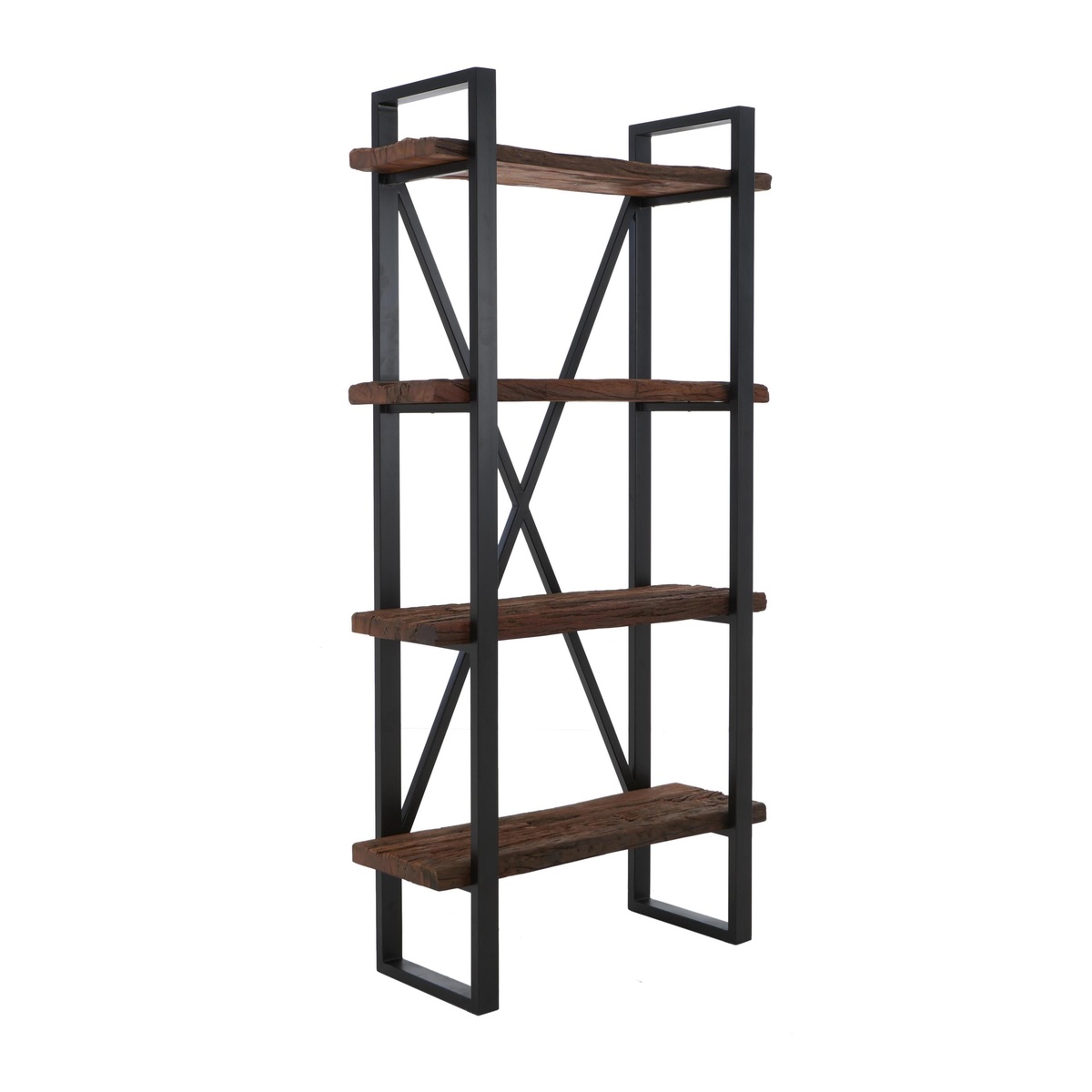 Here’s a shelving unit that’s just as fabulous as anything you might put on its shelves. Wonderfully rustic, its shelves are actually vintage railway sleepers from India. Why you'll love it Everything looks more stylish displayed on this striking shelving unit. Authentic industrial style in rustic wood and iron. The open plan design gives this bookshelf a simple, minimal air. 4 shelves made from reclaimed vintage railway sleepers from India. Black iron leg frame. This shelving unit is part of our Noir range. What you need to know Each plank of reclaimed wood has unique grain, knots and markings and colour variations. This reclaimed wood has an irregular distressed surface and a natural untreated finish. We recommend using coasters and placemats at all times. WARNING! Furniture can tip over unexpectedly and cause injury. This item must be fixed to a wall using the anti- tip kit provided. Be sure to use the correct wall fixings suitable for the walls in your home. Furniture Village is not able to fix anti- tip devices for you. Seek professional advice if you are unsure.