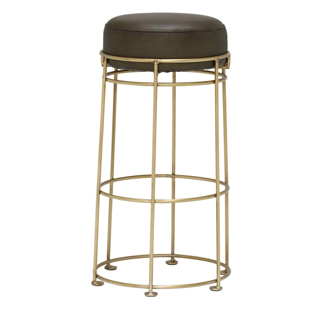 Design. The Nola Barstool is the perfect perch to show off around a kitchen island or bar, bringing a mid-century style with a brass-finished frame and classic design. A foam filled cushion allows hours of sitting with comfort, upholstered in soft, olive coloured matt leather adding opulent elegance.