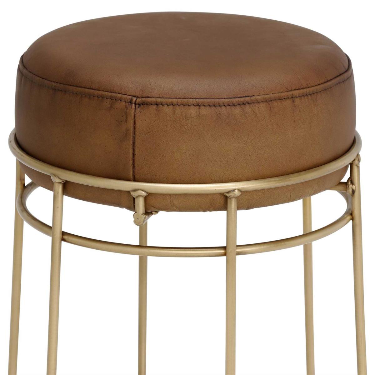 I love this leather counter stool for its balanced mix of sophisticated materials and practical design. The leather seat adds a touch of luxury and durability, making it suitable for everyday use, while the gold-toned metal base brings a chic, contemporary edge. It works especially well in modern or industrial interiors, where the combination of leather and metal complements other statement pieces or urban finishes. For styling, consider pairing it with warm woods or sleek quartz countertops to create a comfortable yet polished dining or bar area. Practical tips include keeping the leather conditioned to maintain its rich appearance and using it in open-plan kitchens or home bars where its height and sturdy build can be fully appreciated.