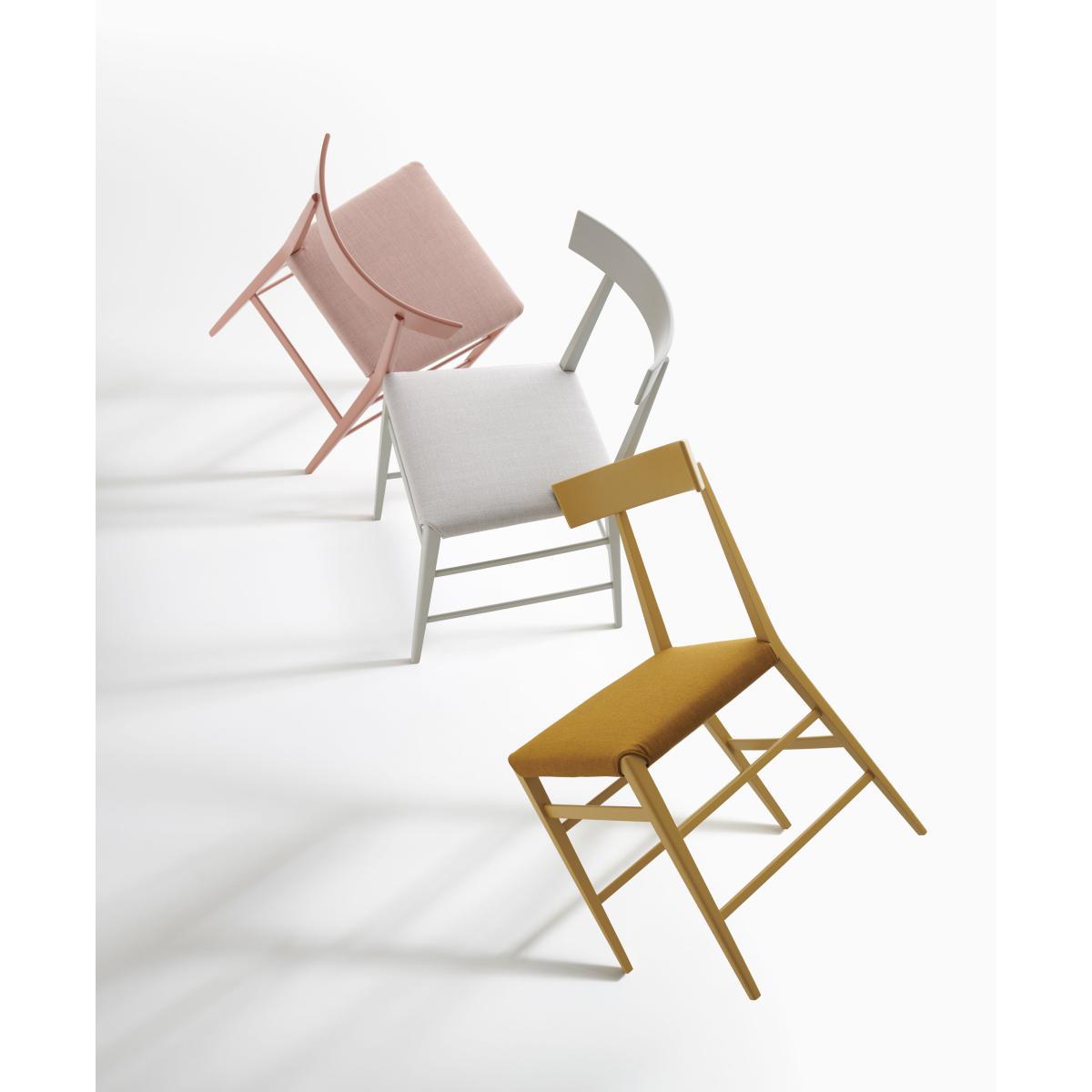 A highly ingenious mix of retro lines and sleek contemporary design. Appreciated for the modernism of its timeless design, Noli is a chair which fits in easily anywhere, both in public and at home. Very comfortable with its padded seat and its bentwood back, it has elegant and light legs. Made from lacquered solid beechwood, is it available in several colours. Its seat cover is removable for easy care.