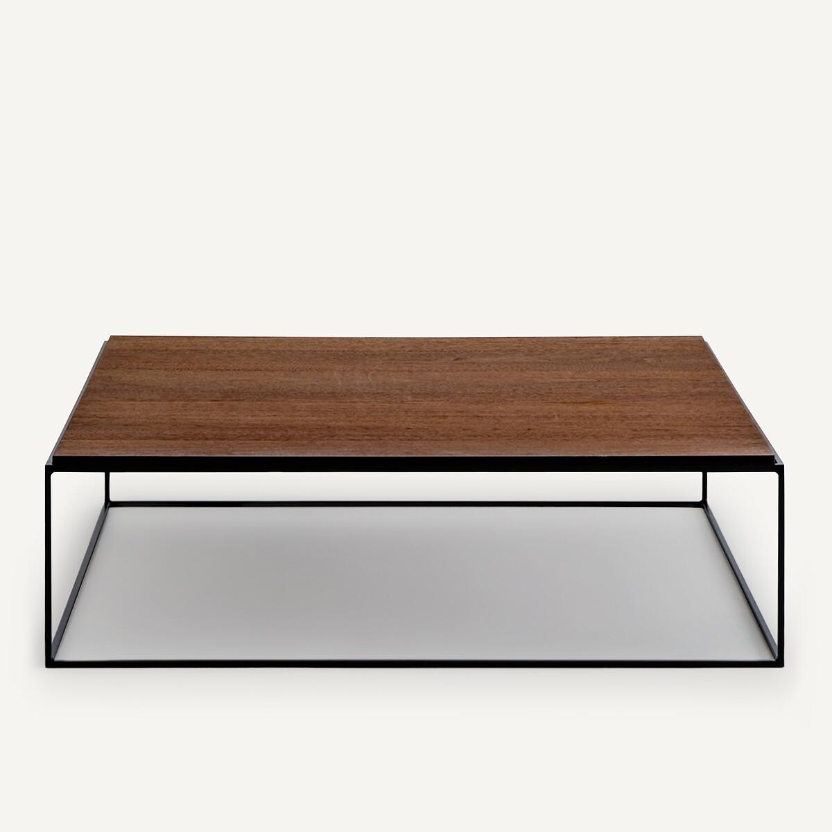 A square format with a fine metal structure and overflowing walnut top, Nolia is a coffee table with a light and elegant design. A beautiful and functional piece of furniture with the AMPM signature. Product Details • Iron structure with black epoxy finish • Top in walnut veneered MDF, nitrocellulose finish • FSC® certified wood. Dimensions • Width: 110cm • Height: 32cm • Depth: 110cmDelivery:. Sold pre-assembled. Available for home delivery. • WOOD FROM SUSTAINABLY MANAGED FORESTS. FSC® certified wood comes from forests that are environmentally, socially and economically well managed. Dimensions and weight of parcel1 parcel • L118 x H37 x D118cm, 34.5kg