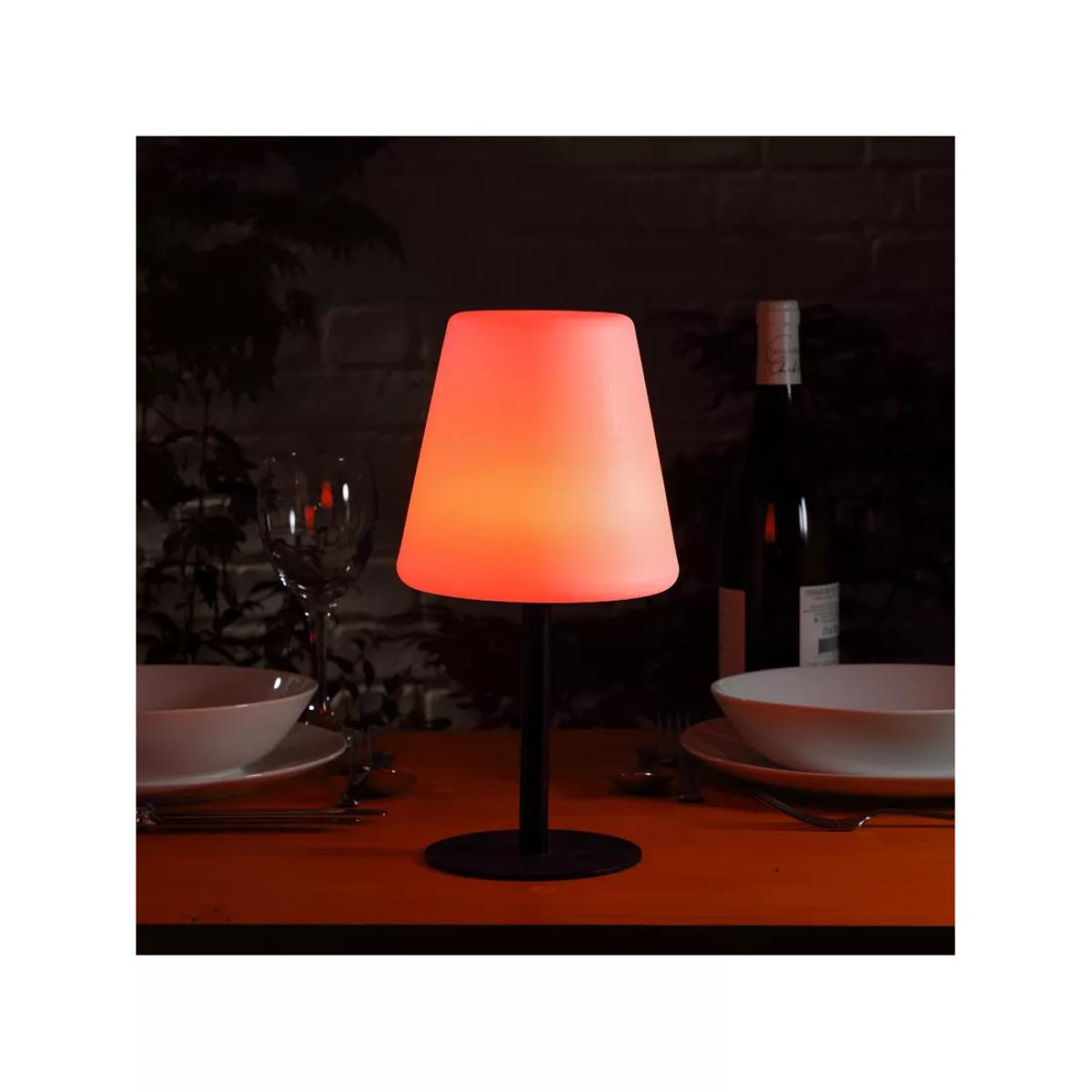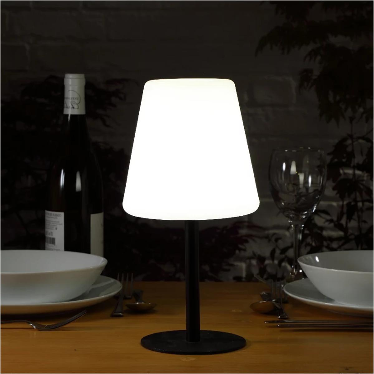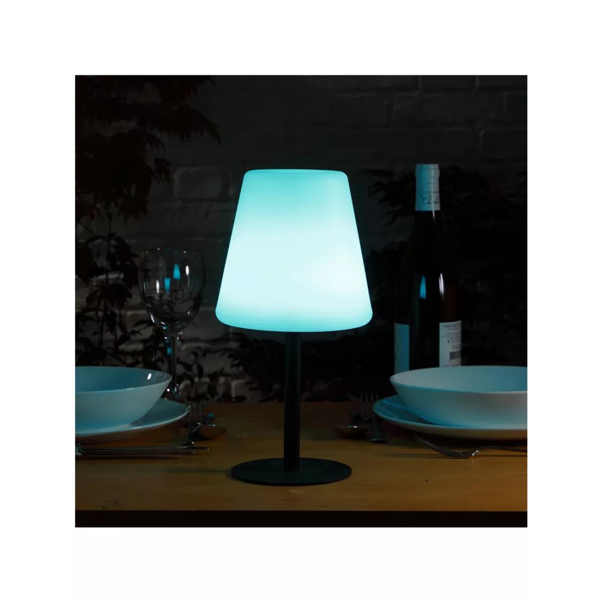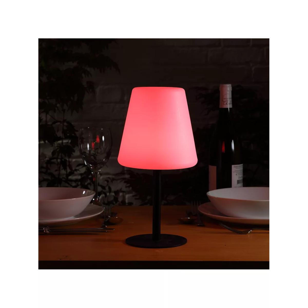 An outdoor table lamp designed with a black metal stand and matt white plastic shade. Use the included NOMA remote to create, from a range of colours and effects, your perfect look.