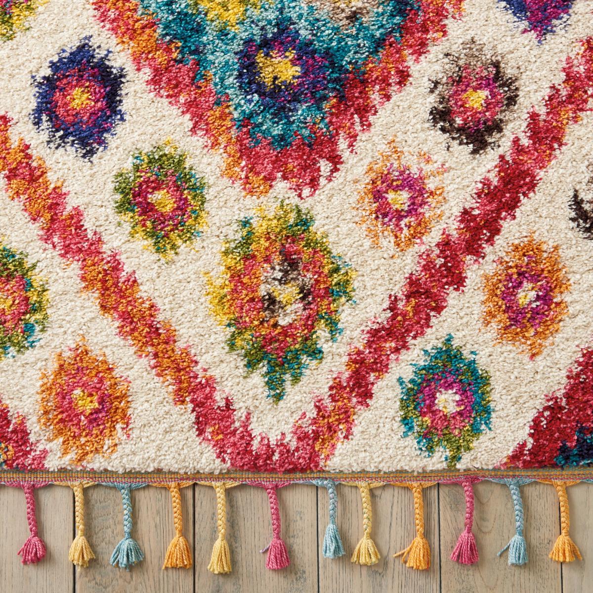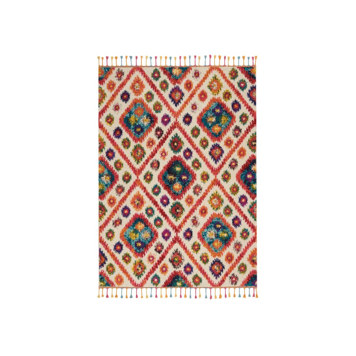 I love this pink rug’s vibrant pattern and lively colours, making it a versatile piece that can brighten up a neutral or minimalist space. It works particularly well in boho, eclectic, or even contemporary interiors, adding warmth and personality. For styling tips, consider layering it over larger, neutral carpets in open-plan areas for a pop of colour, or placing it under a dining table or a lounging nook to create a cosy, inviting feel. Its bold design also pairs nicely with both wooden and modern furniture, making it a flexible choice for various interior styles.