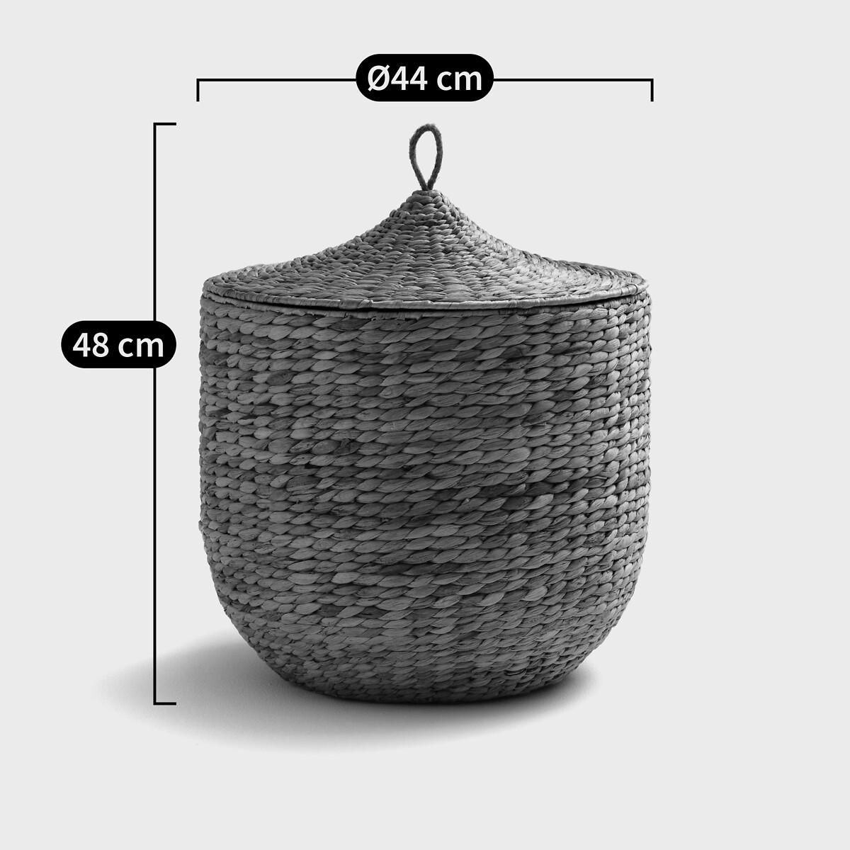 The Nomado woven basket with lid. A beautiful decorative object and a practical storage solution at the same time. Product Details • In braided water hyacinth • Metal frame • With lid. Dimensions • Diameter: 44cm • Height: 48cm. Dimensions and weight of parcel1 parcel • W46 x H44 x D46cm, 3.5kg