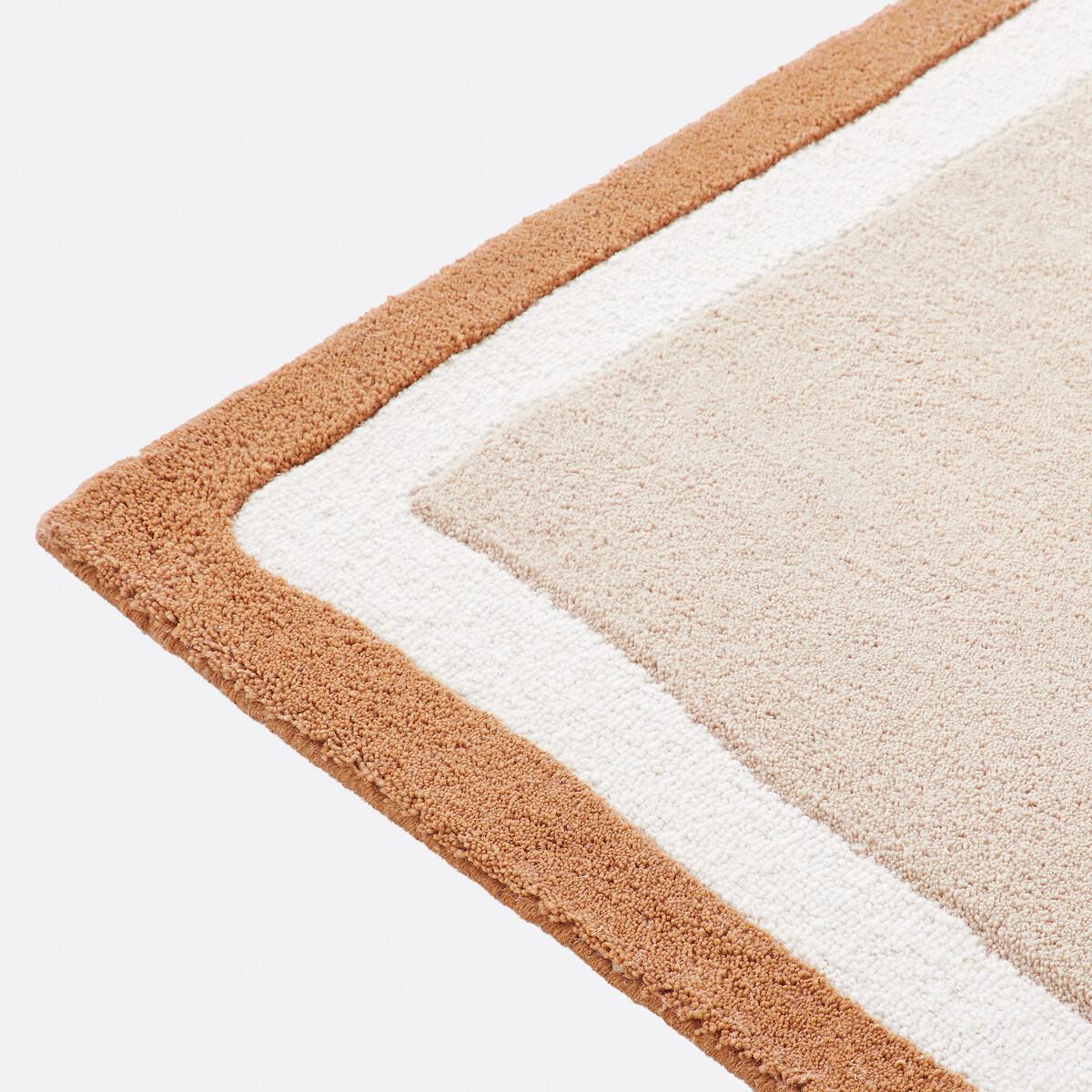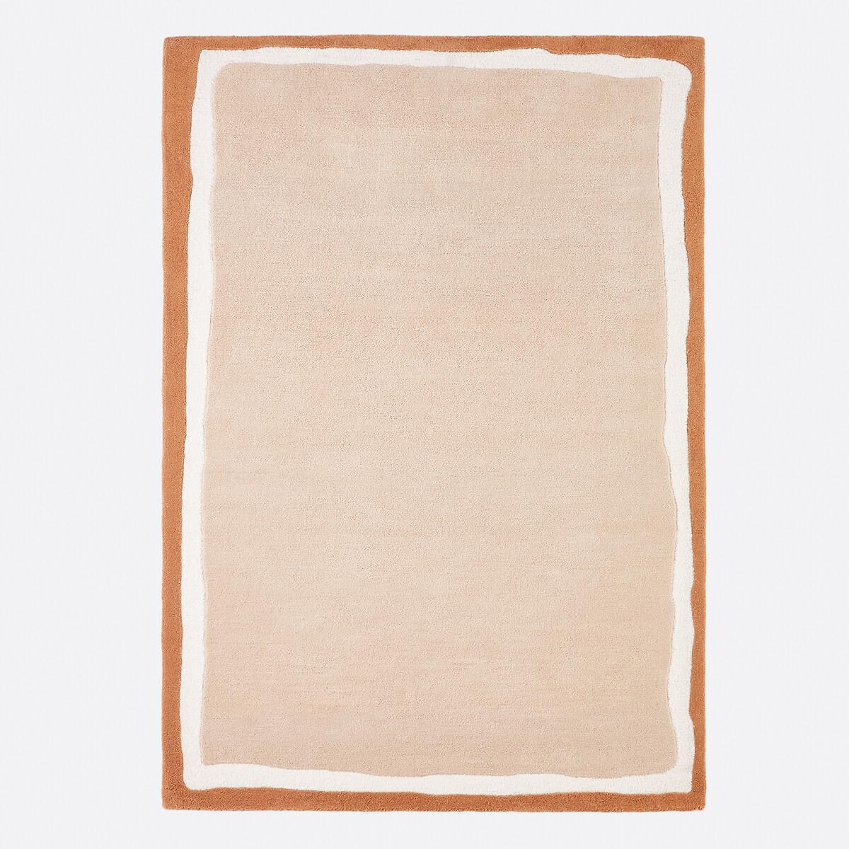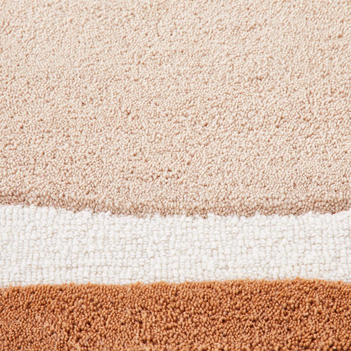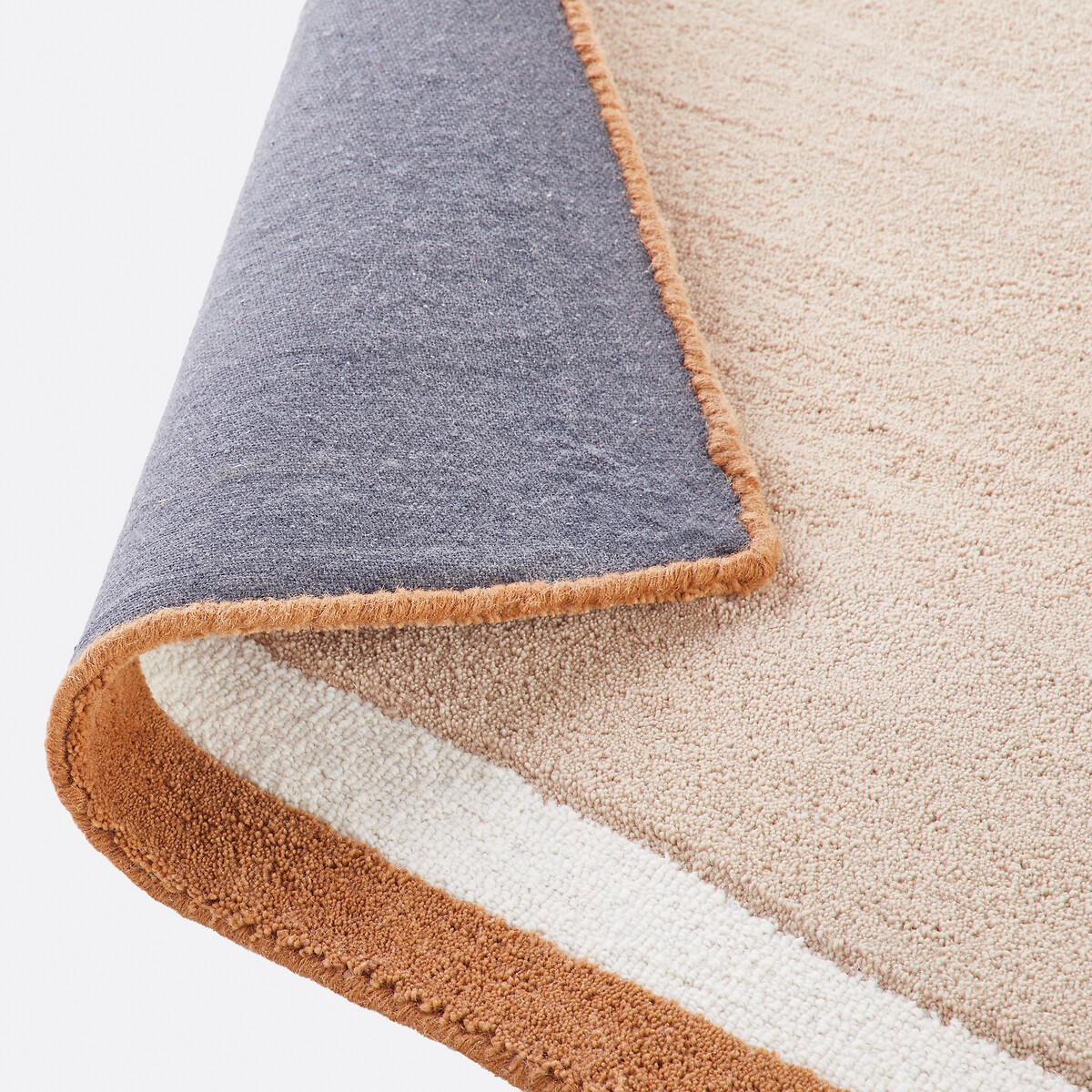 Boosted by its two-tone outline with irregular lines, the Nomia handmade rug adds character to your home and warms the atmosphere. Product Details • 72% polyester, 28% wool (pile) • 3630g/m² • Thickness: 1.2mm • Weaving type: Handmade • Underfloor heating compatible: No • Interior Use: Yes • For outdoor use: No. Quality • Hand-braided, each piece is unique and may have small irregularities which make it authentic.. Colours and dimensions may vary slightly. Care Instructions • Once unrolled, you must wait a few days for the carpet to return to its initial shape. • To keep the edges flat, roll your mat in the opposite direction. Leave it like this for an hour then put it back flat and place a heavy object on it for 2 days. • New, the carpet may give off an odour which dissipates over time. Ventilate your room regularly to reduce it. • To preserve its appearance, rotate your rug regularly in one direction or the other to minimise localised wear in the same places (due to successive passages), and loss of colour due to regular light exposure. Care Advice • Some materials are very fibrous (such as wool) Wool rugs pill naturally during the first few months: this is a normal for this type of product and is not a defect. Remove the excess fibres by hand where possible, do not use a vacuum cleaner with a rotating brush as this can pull and tear the fibres. The pilling will improve over time. • For maintenance, we advise you to vacuum it very little the first month and then to vacuum it without rubbing too much always without using the brush. • Compatible with robot vacuum cleaners: No • Remove stains immediately with a clean, damp cloth. • Dry clean recommended. Dimensions • Width 120 x Length 170cm • Width 160 x Length 230cm • Width 200 x Length 290cm • OEKO-TEX® Standard 100. Standard 100 certification by OEKO-TEX® tests textile products for harmful substances via an independent, international label.