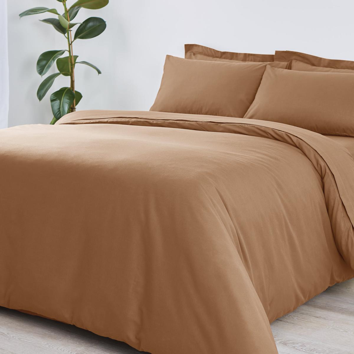 Non Iron Plain Dye Caramel Duvet Cover Brown