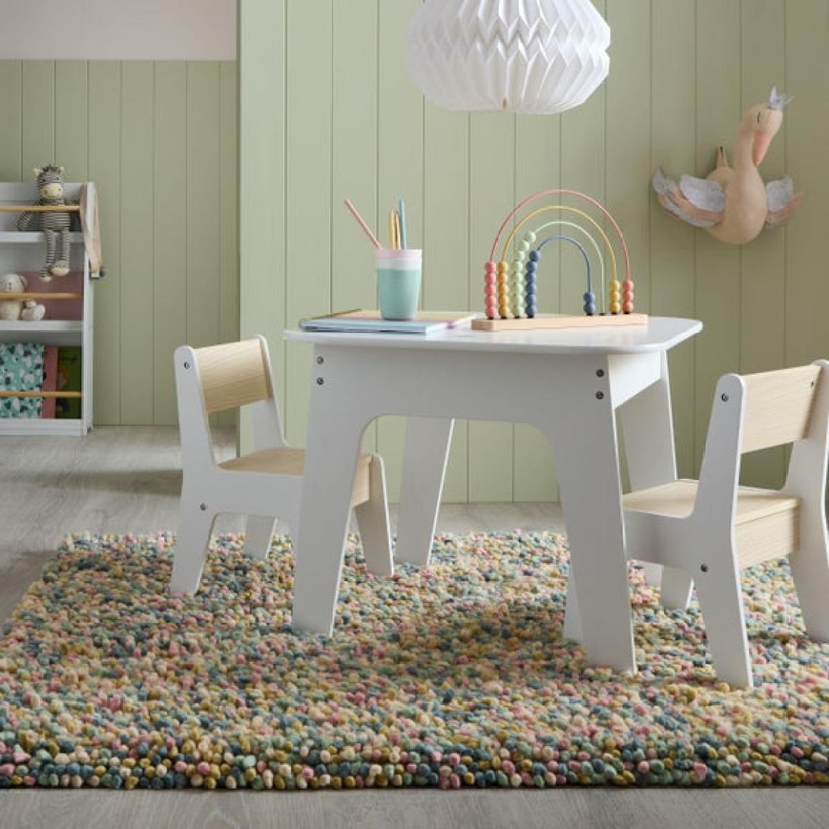 I love this little wool rug for adding warmth and texture to a child's space without overwhelming the room. Its colourful, chunky loop design makes it both playful and practical, as it’s built to withstand busy kids’ feet and little spills. It works well in neutral or pastel-themed bedrooms and play areas, providing a cosy spot for kids to sit and play. For styling tips, consider keeping surrounding furniture light and simple to let the rug be the focal point, and add some soft cushions or toys in complementary colours for a relaxed, inviting look. It’s a versatile piece that balances comfort with a touch of fun, perfect for creating a cheerful but functional space.