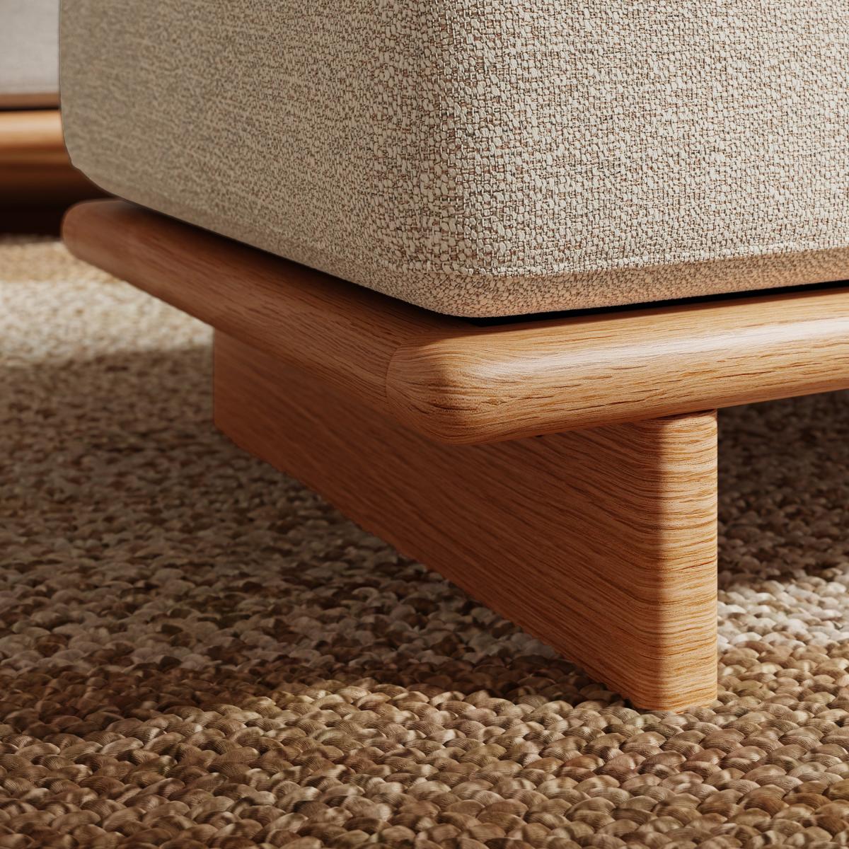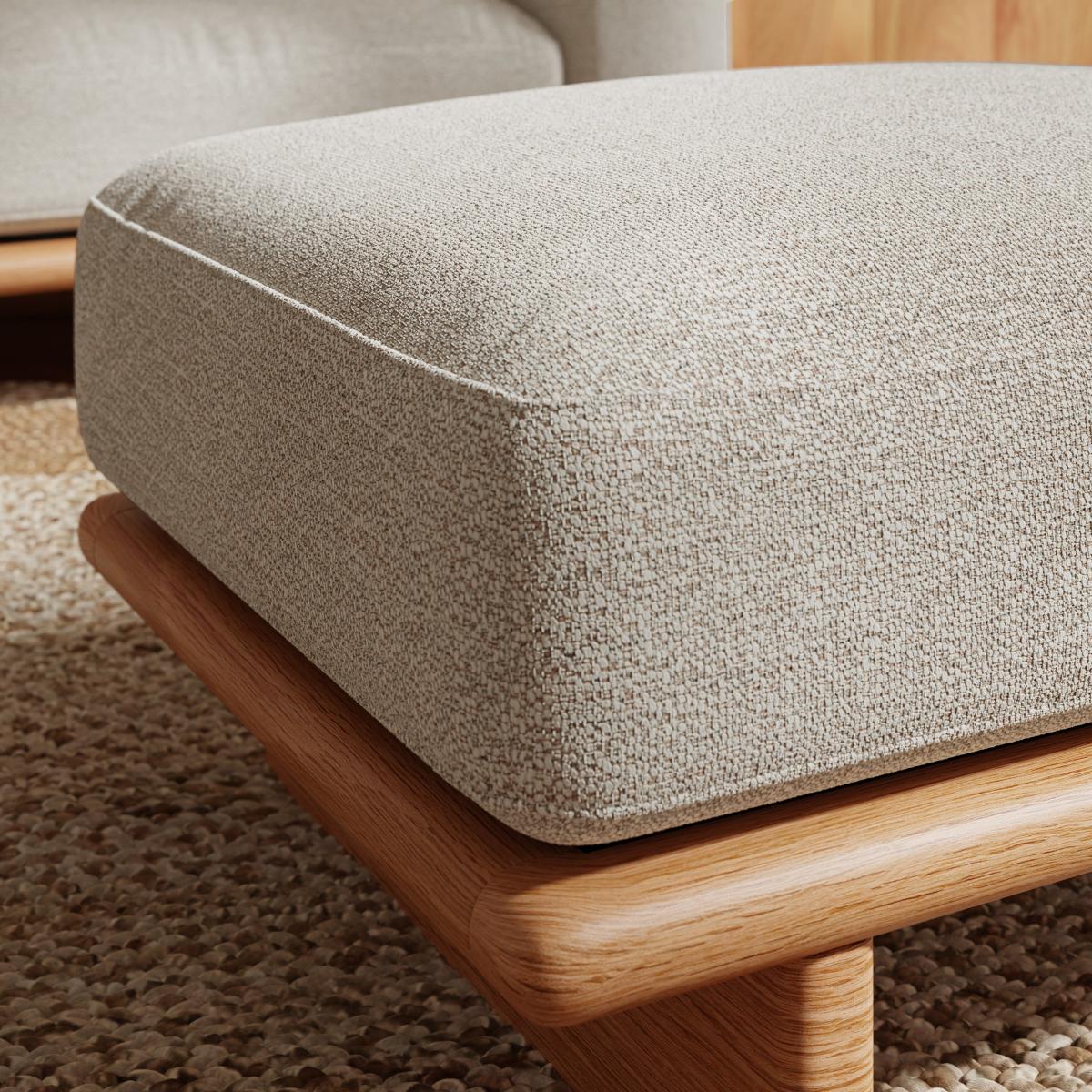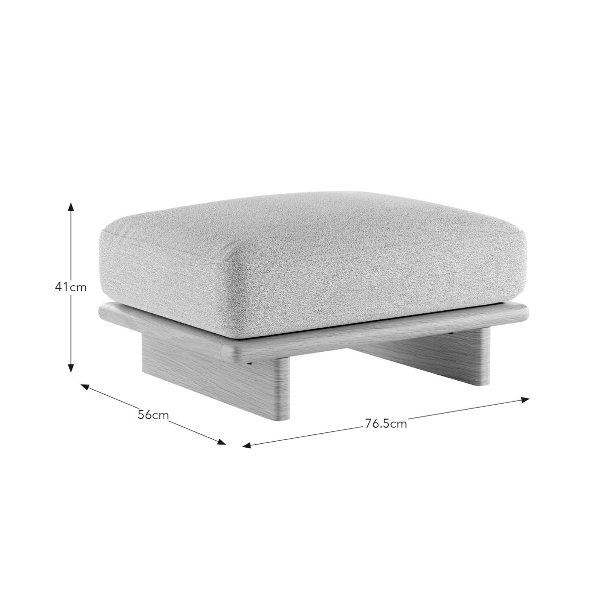 * Trendy footstool * Foam and Fibre filled cushion * Oak legs Covered in boucle fabric, this footstool offers both comfort and texture. Its oak legs provide sturdy support while contributing to the overall modern aesthetic of your space. Whether used as a footrest, extra seating, or decorative piece, this footstool enhances your living area with a stylish and practical design.