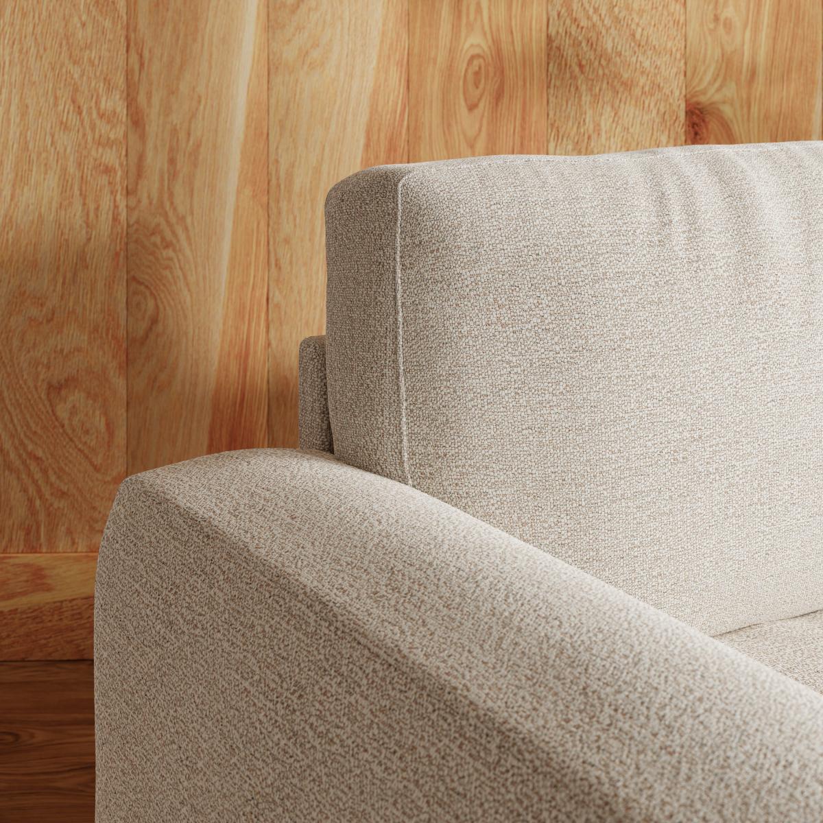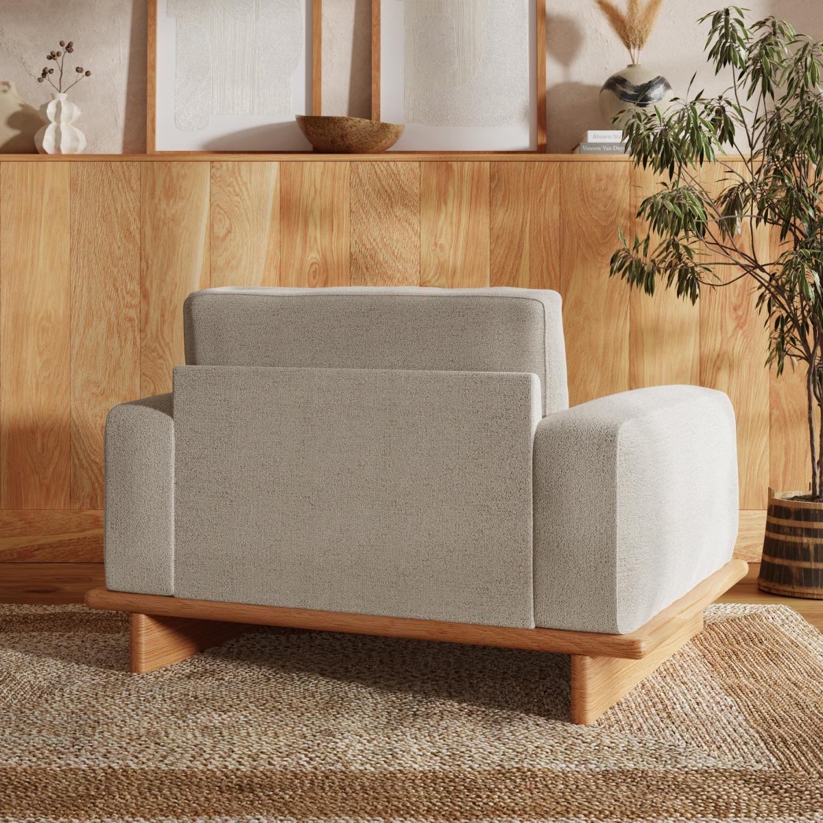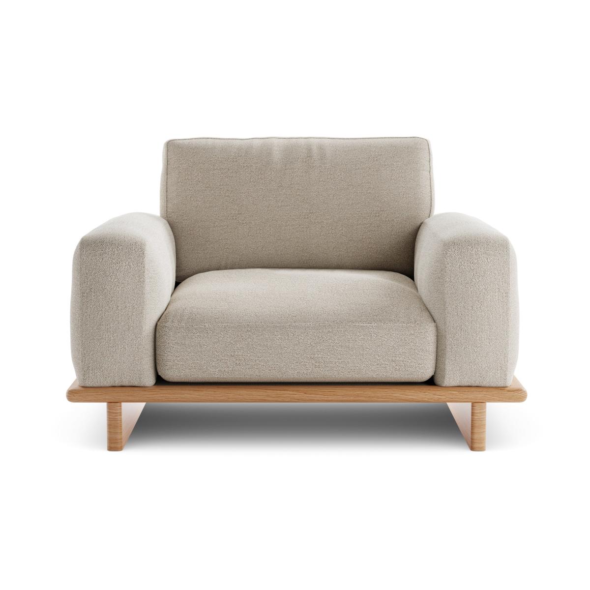* Trendy chair * Curved arms * Foam and Fibre filled cushions * Oak legs Upholstered in soft boucle fabric, it provides a warm, inviting place to relax. The sturdy oak legs contribute to the sofa’s sleek, modern aesthetic, offering both durability and stability. Perfect for smaller spaces or as an additional seating piece, this snuggle chair creates a relaxing spot for unwinding and complements a variety of room styles with its subtle yet contemporary design.