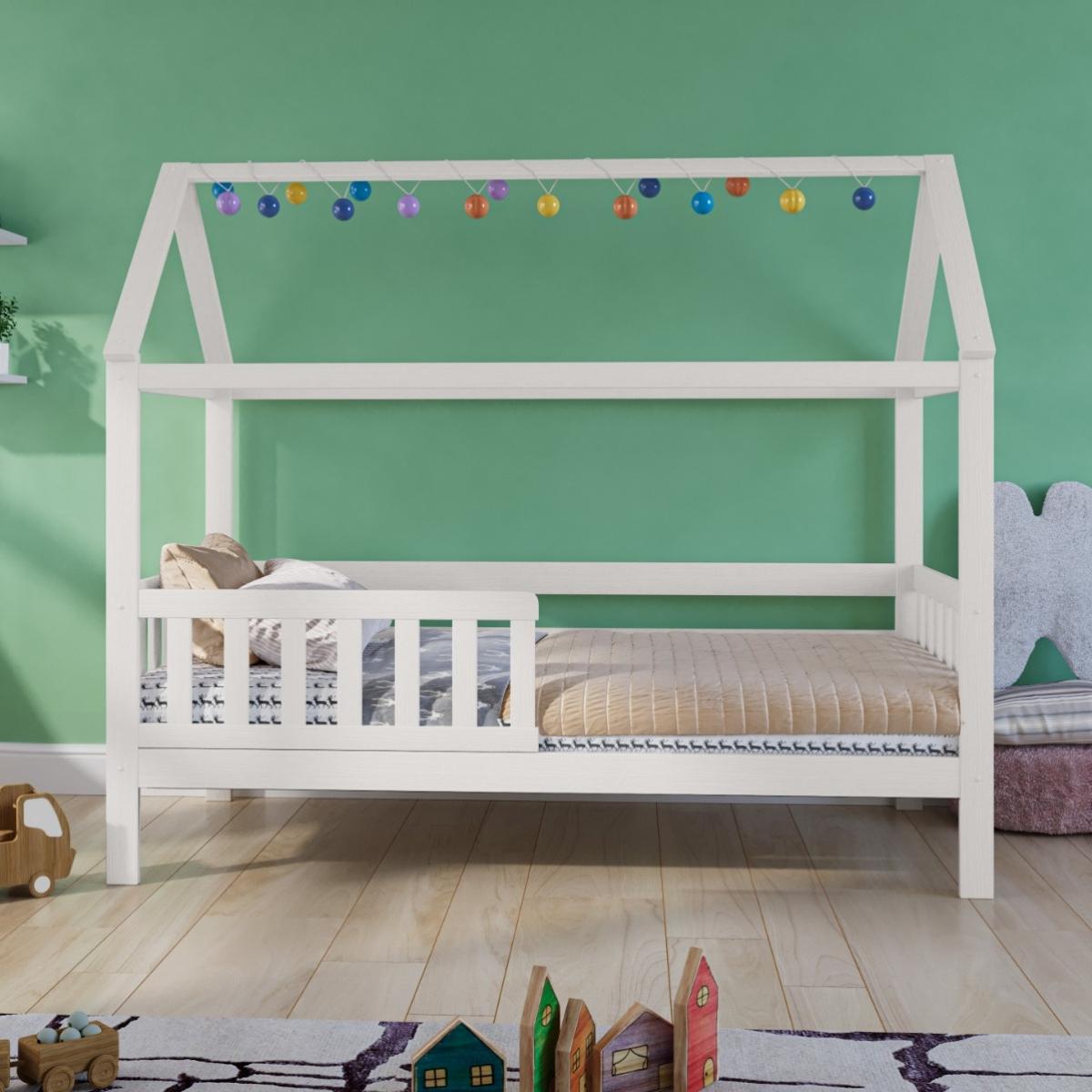 The Alisa House Bed in timeless white will transform your bedroom into a haven of tranquillity. Crafted from premium wood, it exudes sophistication and promises enduring quality, making it a perfect addition to any bedroom.