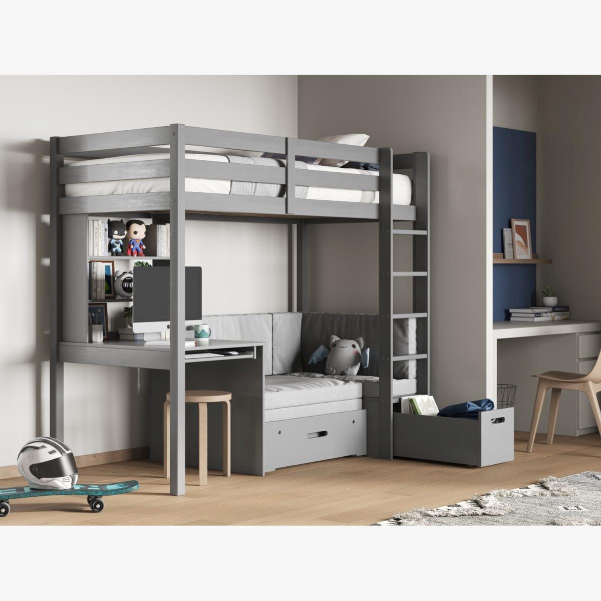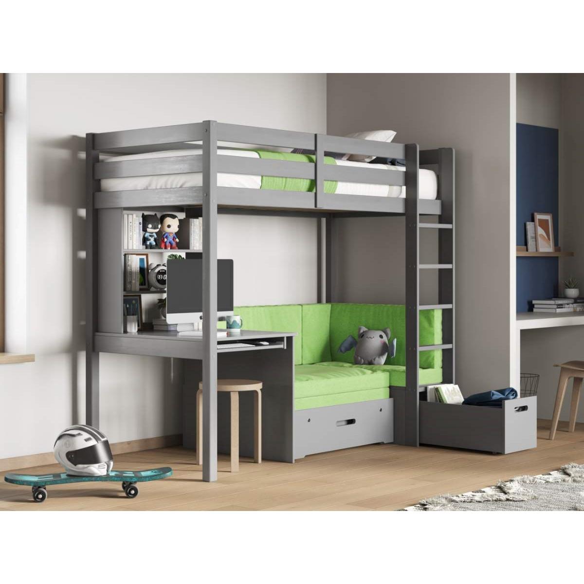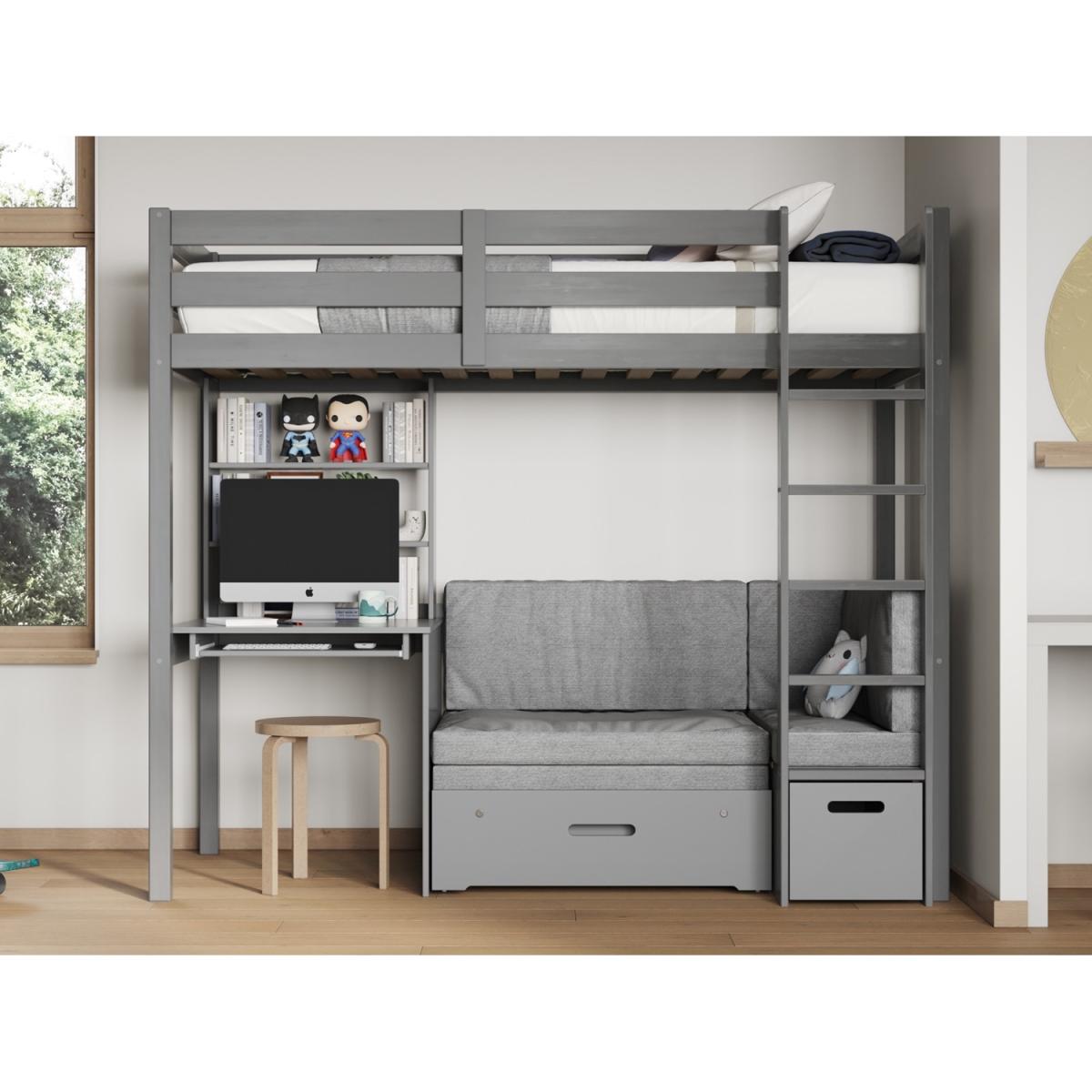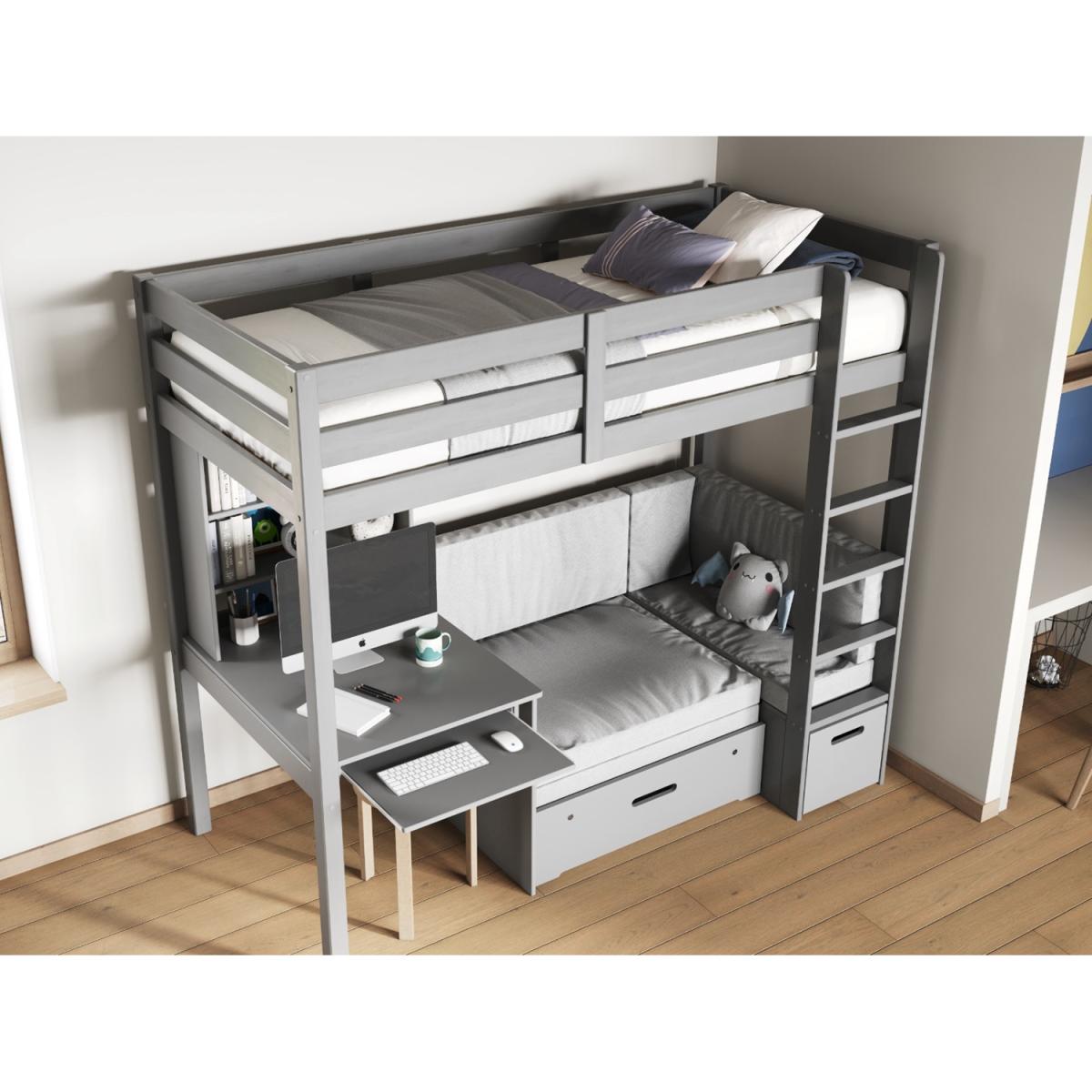 Noomi Eino Grey High Sleeper Bed With Futon Sofa and Desk -