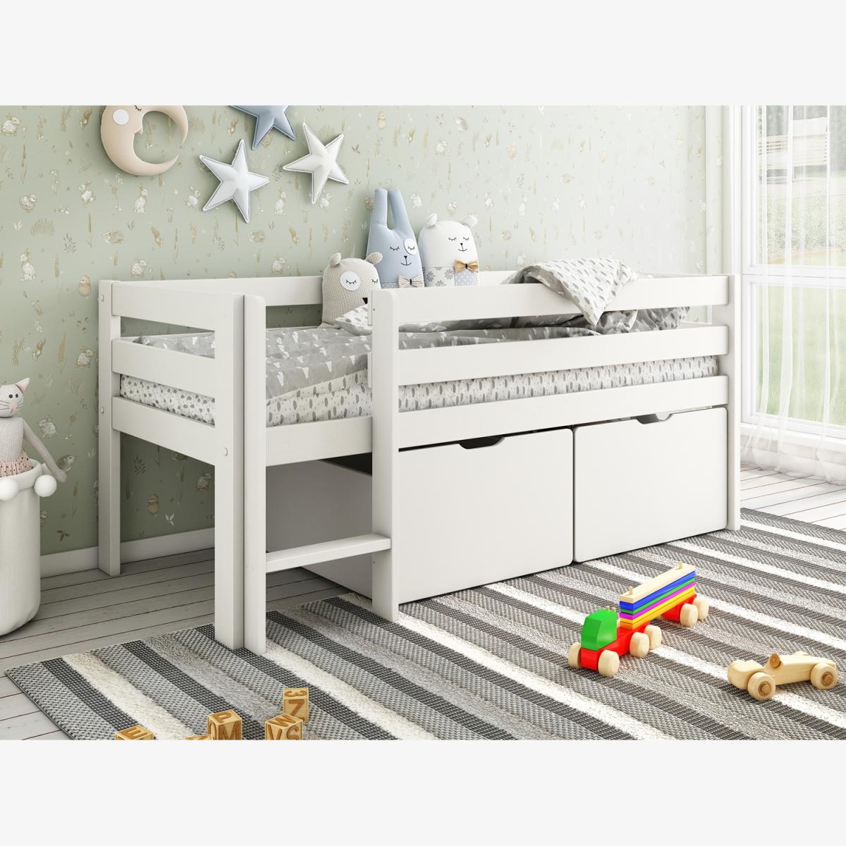 Noomi Solid Wood Shorty Mid Sleeper Bed With Crate Drawer Set -