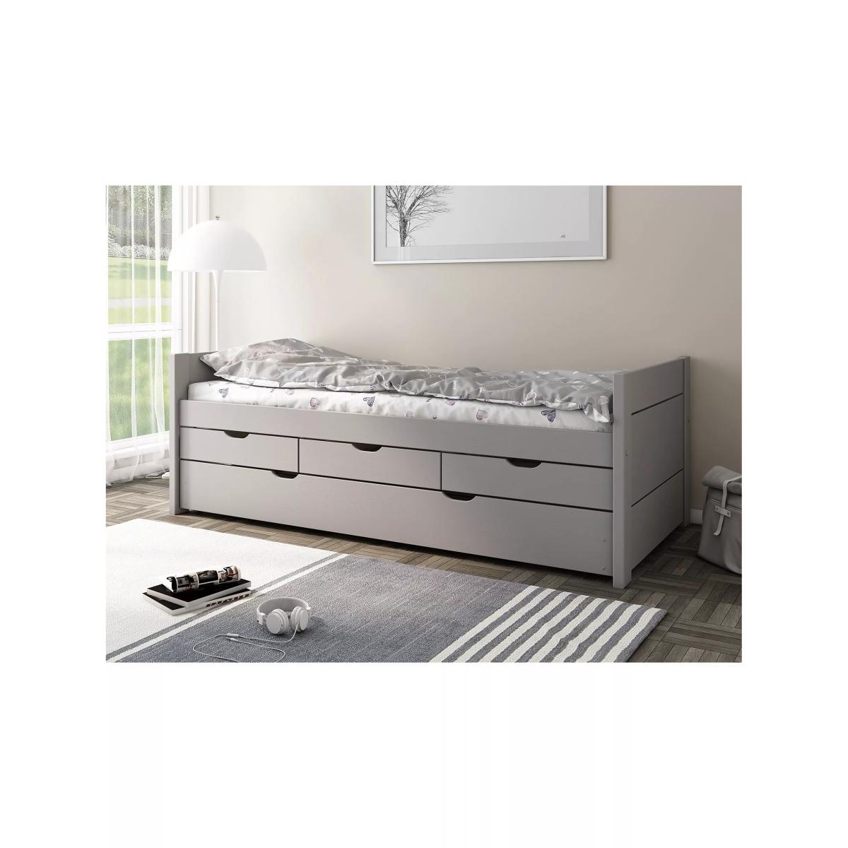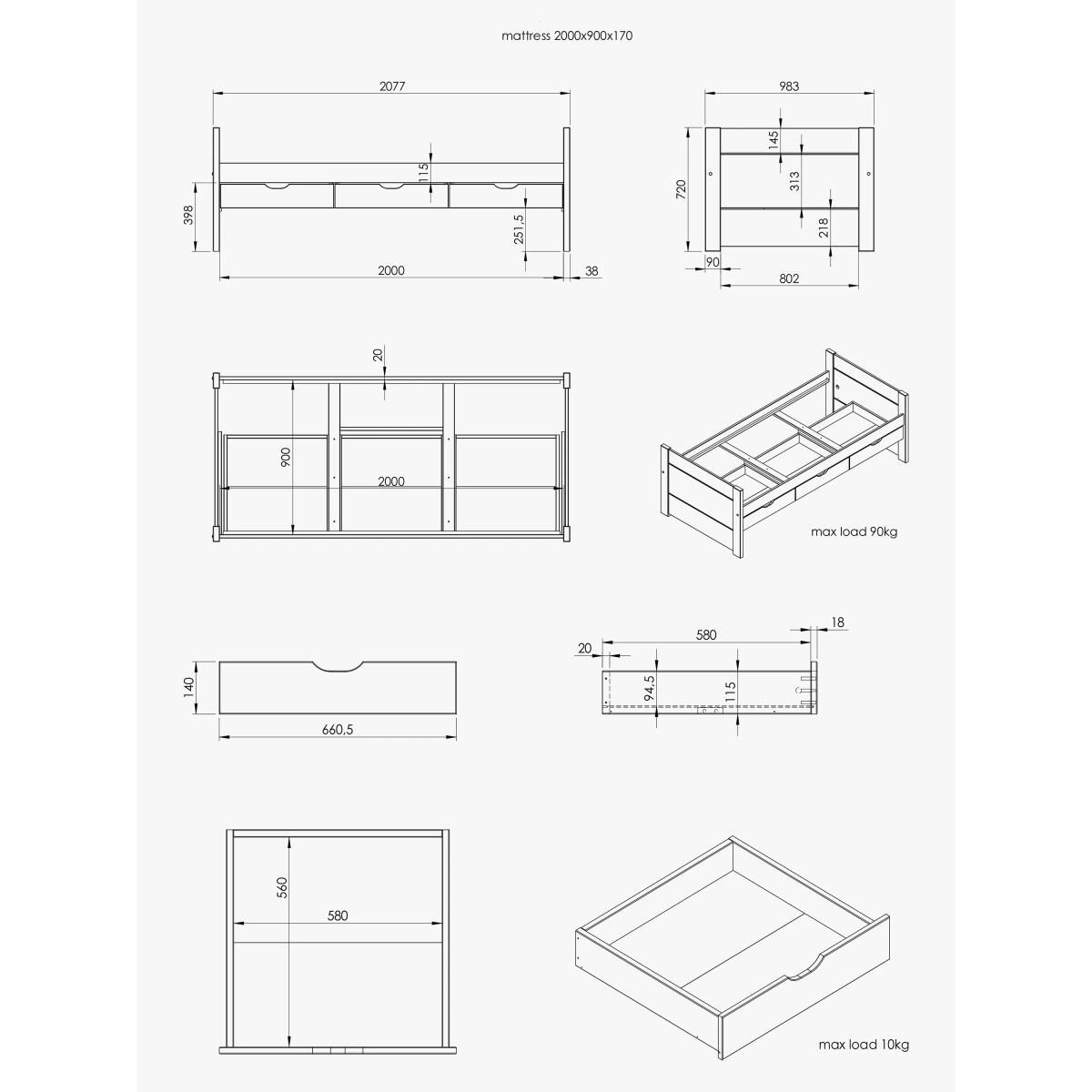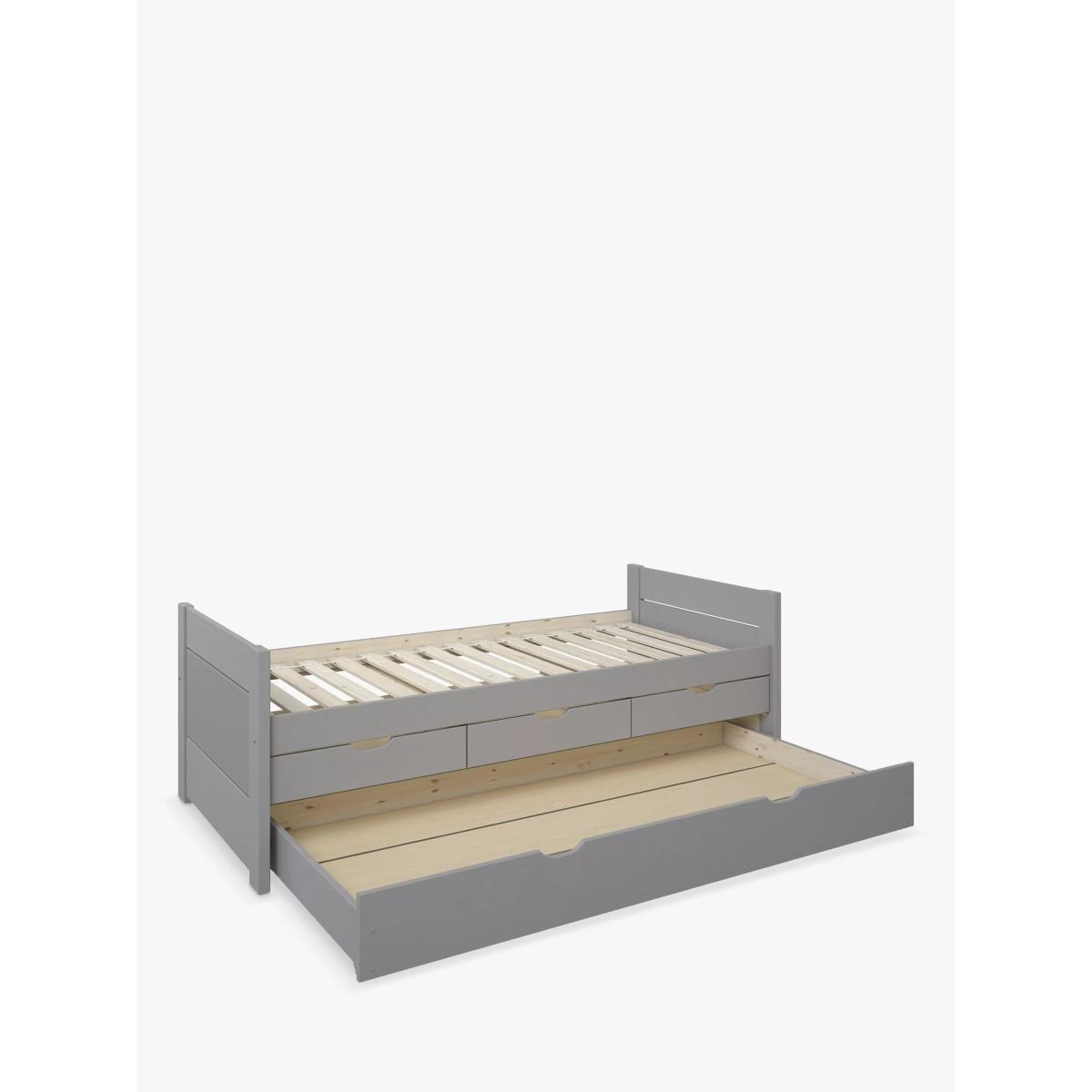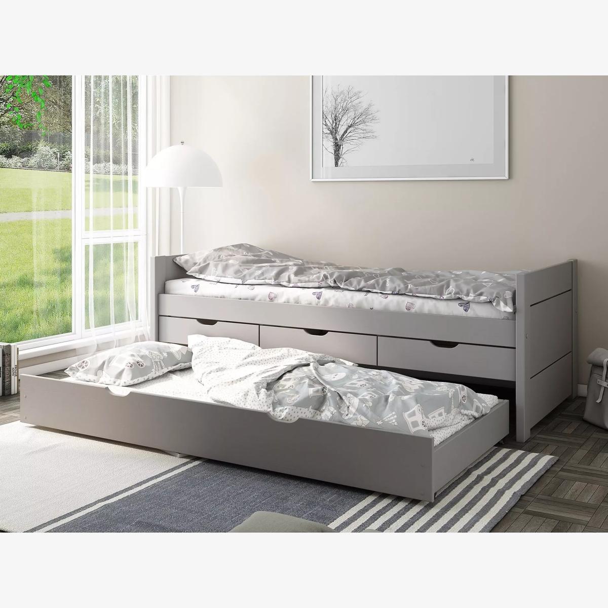 This rustic-styled solid wood guest bed comes with three spacious drawers and a convenient pull-out trundle for even more sleep space. This bed is compatible with a European single mattress (not included).