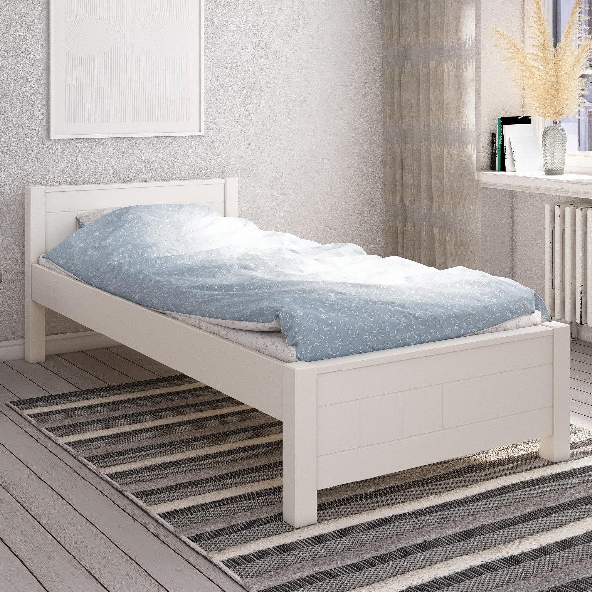 I love this bed for its clean, classic design and solid wood construction, which adds durability and a touch of natural warmth to any bedroom. It works particularly well in Scandi or minimalist interiors, where its simplicity complements understated decor, but it can also be styled in a cosy, layered way with textured bedding and throws for a more inviting look. Practical styling tips include adding a bed skirt to hide the frame for a softer aesthetic or pairing it with contrasting textiles-such as colourful cushions or patterned sheets-to create visual interest. Its neutral white finish makes it versatile, allowing it to adapt to various colour schemes and accessories, making it a reliable choice for both contemporary and traditional spaces.