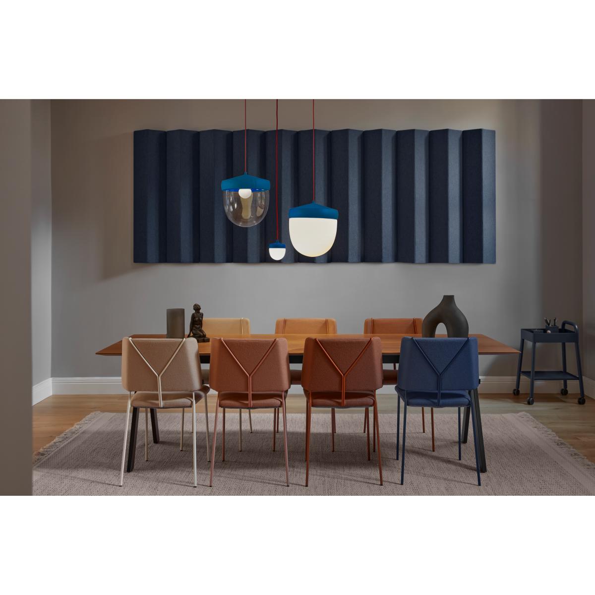 I really like the Noon Pan pendant for its playful yet sleek design; the clear blue-red glass adds a pop of colour without overwhelming a space. It works particularly well in contemporary or Scandi-inspired interiors, where its clean shape and vivid hues can serve as a focal point. I’d suggest hanging it over a dining table or in a kitchen island to bring a splash of colour while maintaining an understated feel. When styling, keep other lighting minimal or neutral to let this piece stand out, and consider pairing it with matte finishes or natural materials for a balanced look. Its size and playful style make it surprisingly versatile, so don’t shy away from experimenting with placement to create a lively, inviting atmosphere.